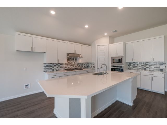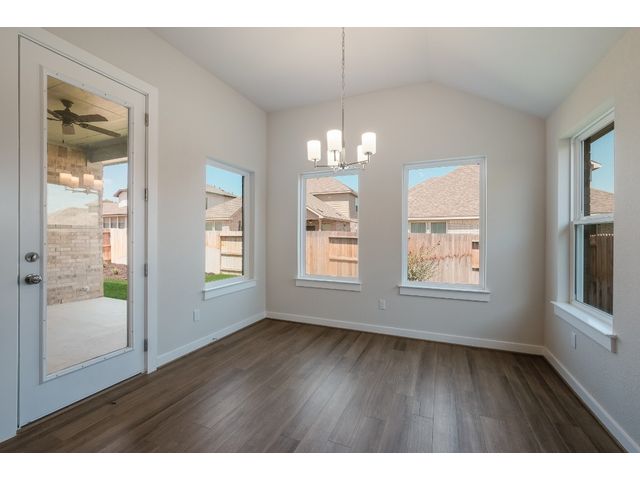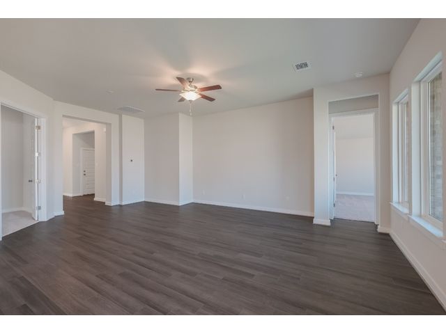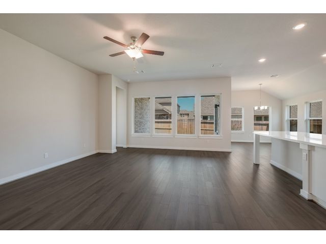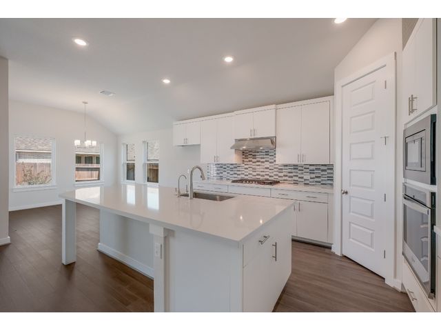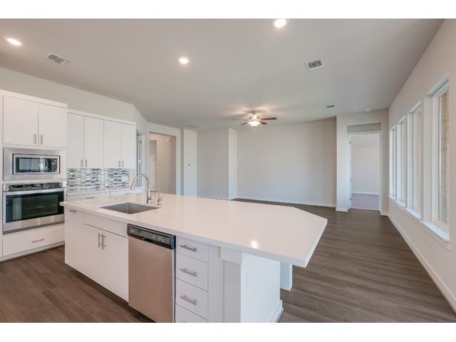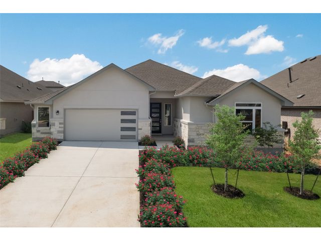 The Driskill is a new home design by Scott Felder Homes. This one story home is a 4 bedrooms, 3 baths, 2.5 car garage. The home features an open concept living, perfect for the active family, with ample amount of storage through out the home and natural light. The living room opens up to a chef's kitchen, with large island, 9 windows bringing in natural light, 36' gas cook top, built in appliances, trash can pull out cabinet and drawer banks for storage. The master suite features a luxurious free standing tub, dual vanities and spacious walk-in closet . Enjoy evenings on the covered patio. A must see!!The home is located in the highly desired Veramendi community, which features almost 500 acres of parks, a community pool, elementary school, with a second planned in 2025, a planned town square, and will have approximately 20 miles of hike/bike trails throughout the community! A great place for those who love to exercise, or raise a family.