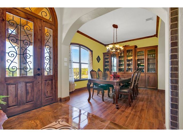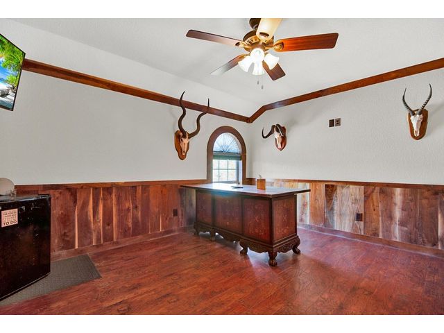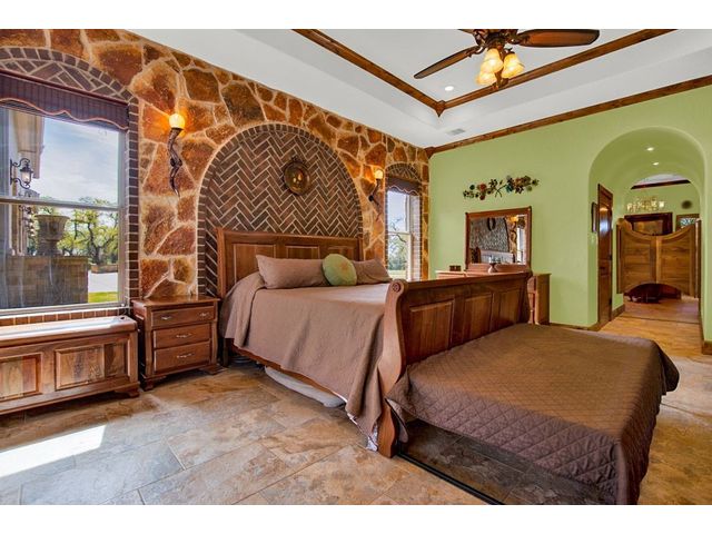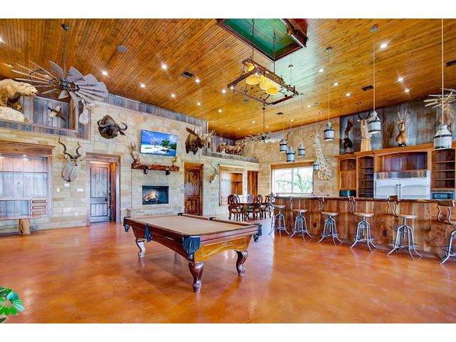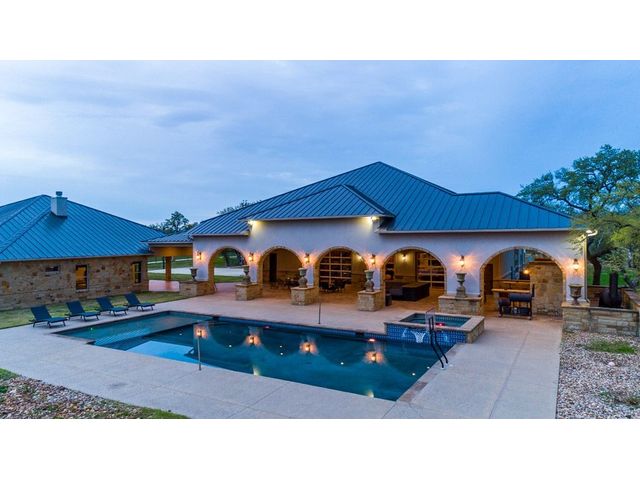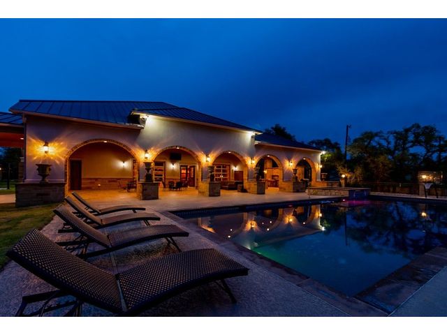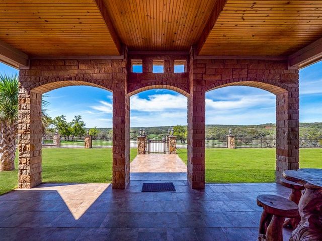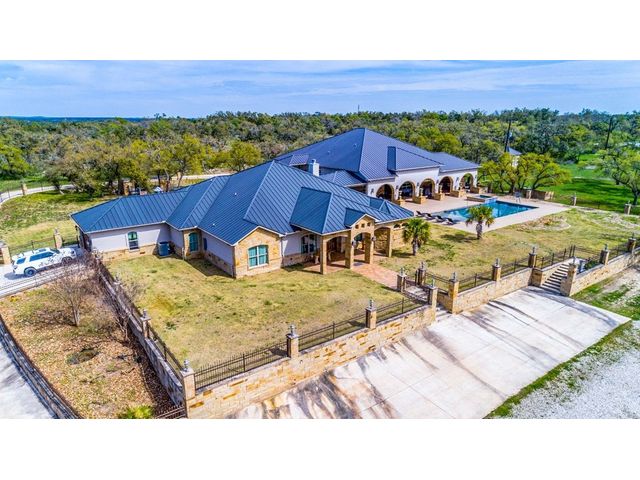 Large estate on 38.9 acres. Completely fenced with a 12-foot game fence and grand rock entrance. Live the life of luxury in this almost 9,000 sqft of living space with 8 bedrooms 8 full baths and 3 half baths. Custom built in every nook and cranny with Texas stone, hardwood, and granite cabinetry. Two large fireplaces, swimming pool, outdoor basketball court, indoor RV parking garage, indoor and an outdoor bar with complete catering setup, or just relax in your own private movie theatre. Other outdoor amenities include dog kennels, livestock pens, barns, and sheds. Large backyard area - fully fenced with wrought iron fencing. Gorgeous Views and beautiful sunsets right from your oversized covered porch. Super unique feature - your own private natural cave that you can explore! Centrally located in the heart of Texas Hill Country right next to the Wimberley Junction on R12 and FM 32. Estate is at the end of the gated subdivision of Trails End Ranch. Less than 30 minutes to Canyon Lake, Wimberley, San Marcos, or New Braunfels. Looking for country living near the big cities? You are less than an hour away from Austin or San Antonio! This is the Texas Hill Country Ranchette you have been waiting for!