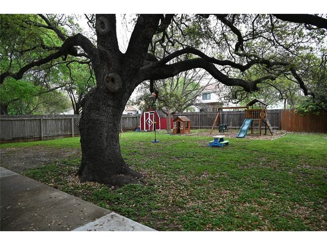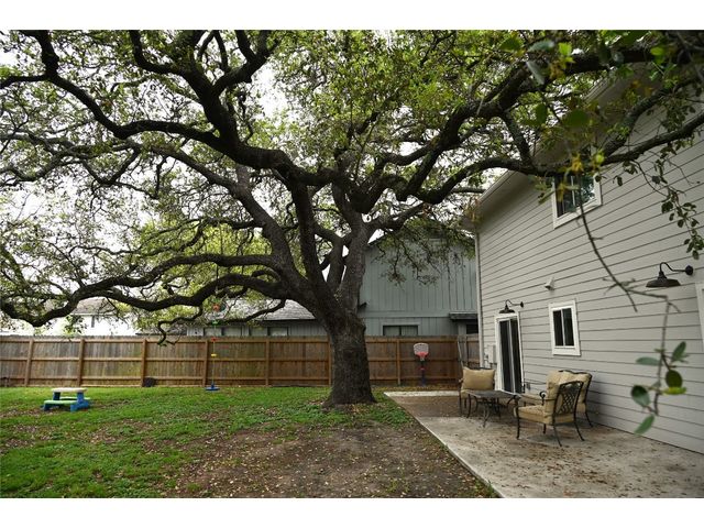 Great home in SW Austin with a great family room, bonus upstairs game room, spacious bedrooms, floor to ceiling stone fire place, laminate wood floors. Kitchen features granite counter tops, custom tile back splash, and a sunny breakfast area. The primary bedroom is very large and it has a walk-in closet w/shelving, master bath w/double vanities, garden tub and a separate shower. The backyard w/patio, is amazing and features a HUGE heritage oak tree that provides tons of shade! Roof, siding and windows were all replaced in 2022!