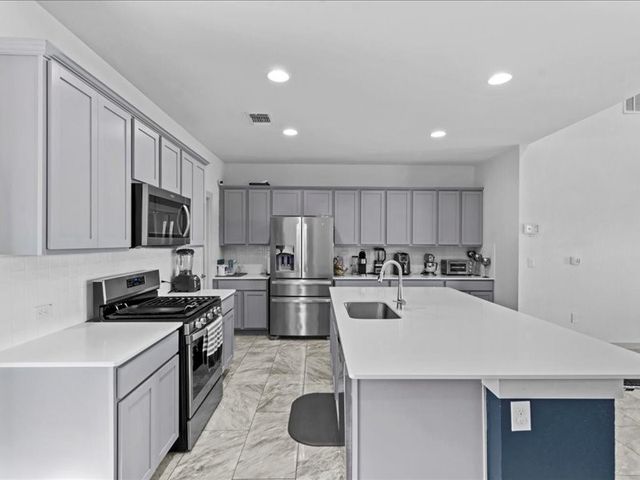 Welcome to 3206 Dampier Pass, your next home located in Pflugerville, where modern elegance meets functional design. Step into the heart of the home and discover a kitchen equipped with stainless steel appliances, a large center island and ample cabinets for all your storage needs. This exceptional home boasts custom features throughout, including a spacious personalized closet, elegant porcelain flooring throughout the first floor, a sleek epoxy garage floor, fresh paint adorning every corner, and a meticulously finished garage. The kitchen seamlessly integrates with the living area, ideal for family gatherings and entertaining. The primary suite features a cozy bedroom, double vanity, walk-in shower, and an expansive walk-in closet complete with built-in shelving, drawers, and glass cabinets for added convenience and style. Upstairs, a versatile loft space awaits, ready to accommodate your needs as a second living area, office, or play area. Plus, the location could not be more perfect! The home is near toll roads and major highways, ensuring seamless travel & easy commuting. Shopping, dining, and entertainment options are endless with easy access to Stone Hill Town Center, Tech Ridge Center, Lake Pflugerville, Northeast Metro Park, Typhoon Texas, and numerous restaurants. This location is also ideal for professionals who are employed with major companies including Samsung, GM, and Dell just to name a few. Schedule your showing today and see why 3206 Dampier Pass is the perfect place for you to call your next home.