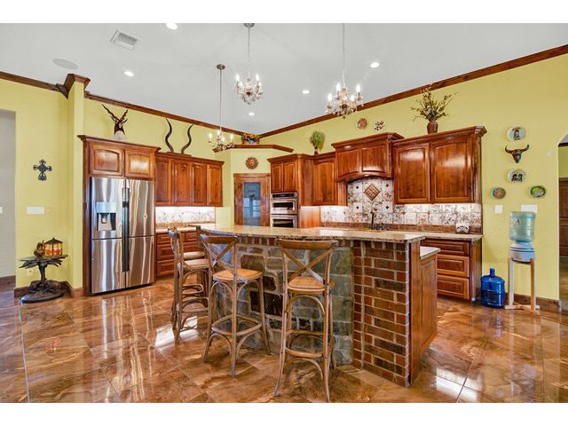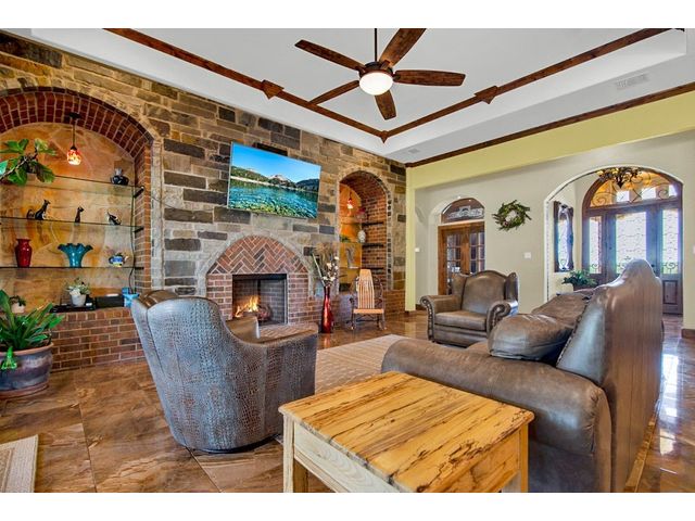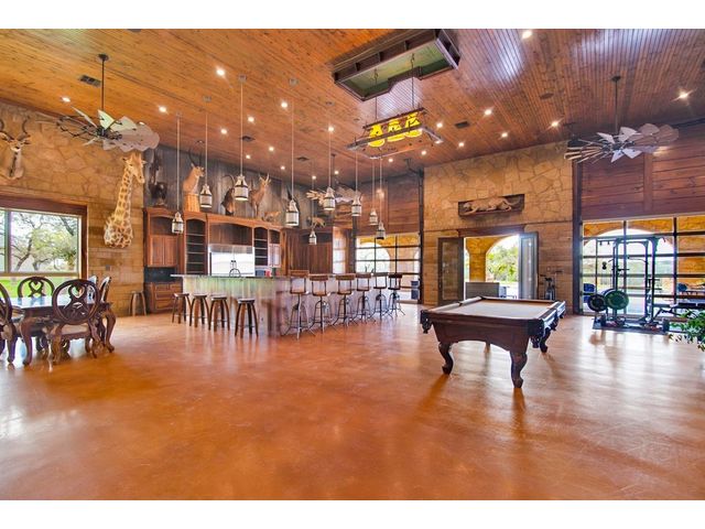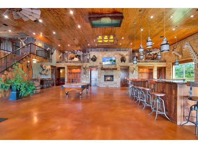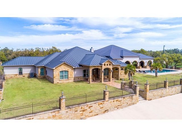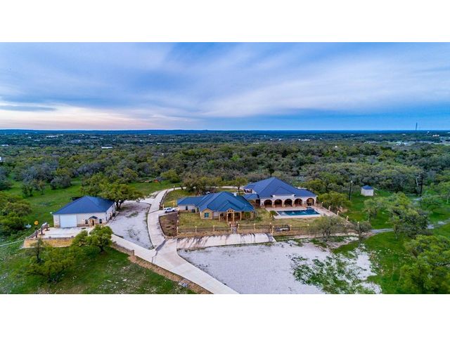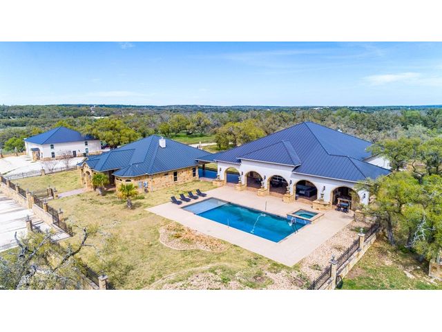 Large estate on 38.9 acres. Completely fenced with a 12-foot game fence and grand rock entrance. Live the life of luxury in this almost 9,000 sqft of living space with 8 bedrooms 8 full baths and 3 half baths. Custom built in every nook and cranny with Texas stone, hardwood, and granite cabinetry. Two large fireplaces, swimming pool, outdoor basketball court, indoor RV parking garage, indoor and an outdoor bar with complete catering setup, or just relax in your own private movie theatre. Other outdoor amenities include dog kennels, livestock pens, barns, and sheds. Large backyard area - fully fenced with wrought iron fencing. Gorgeous Views and beautiful sunsets right from your oversized covered porch. Super unique feature - your own private natural cave that you can explore! Centrally located in the heart of Texas Hill Country right next to the Wimberley Junction on R12 and FM 32. Estate is at the end of the gated subdivision of Trails End Ranch. Less than 30 minutes to Canyon Lake, Wimberley, San Marcos, or New Braunfels. Looking for country living near the big cities? You are less than an hour away from Austin or San Antonio! This is the Texas Hill Country Ranchette you have been waiting for!