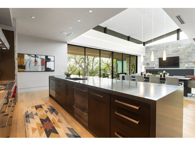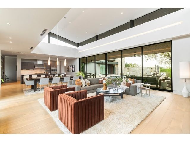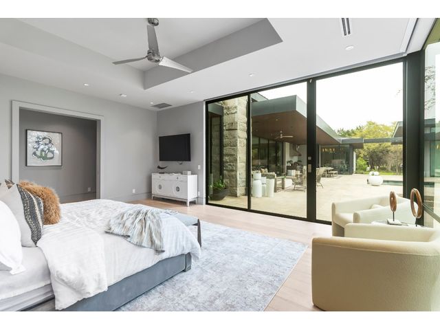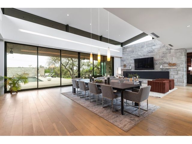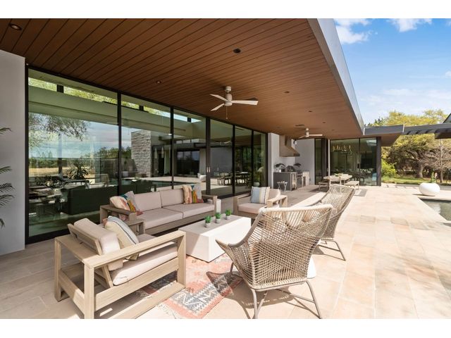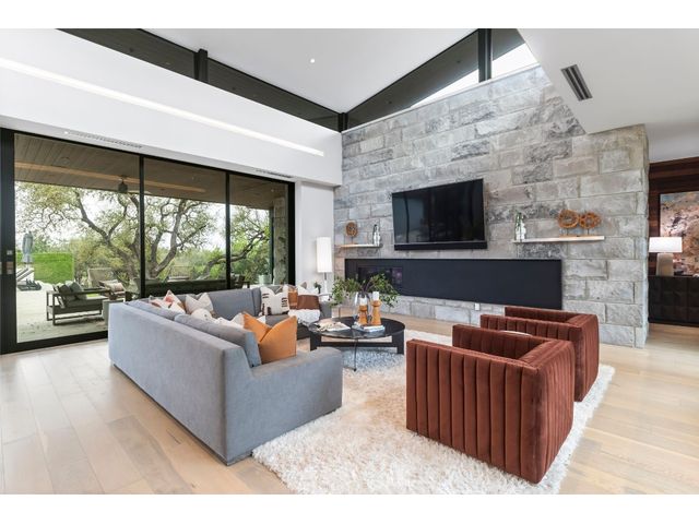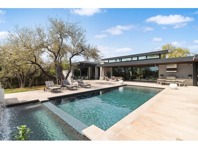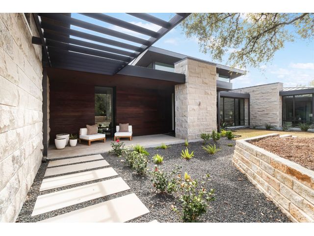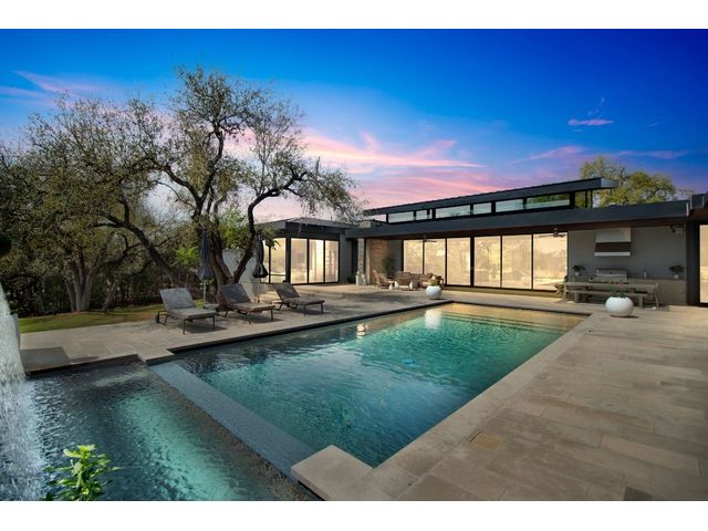 Introducing 4001 Verano Drive, a masterpiece of modern design nestled within the prestigious Barton Creek community. Crafted by renowned architect Dick Clark and meticulously built by Sagiv's, this home epitomizes luxury living with unparalleled attention to detail and quality craftsmanship. Step inside to discover a seamless blend of glass, stone walls, and wood floors, creating an atmosphere of contemporary elegance fused with warmth. Every corner of this residence exudes sophistication and style, offering a harmonious balance between modern aesthetics and inviting spaces. Designed to embrace the natural beauty of its surroundings, this home effortlessly integrates indoor-outdoor living. Retractable glass walls beckon you to the expansive outdoor living area and sparkling pool, where al fresco entertaining becomes a way of life. Whether hosting gatherings or enjoying quiet moments of relaxation, the outdoor space provides a serene retreat. Beyond its architectural splendor, this home boasts the convenience of single-story living, providing ease and accessibility for everyday comfort. Additionally, a detached cabana awaits, complete with a kitchenette and full bathroom, offering versatility for guests or as a private retreat. Located in the coveted Barton Creek community, residents enjoy access to world-class amenities, including golf courses, hiking trails, and proximity to downtown Austin. Experience the epitome of luxury living at 4001 Verano Drive, where exceptional design meets unparalleled comfort in the heart of Austin's most exclusive enclave. *Seller will accept Crypto and can also offer owner financing*