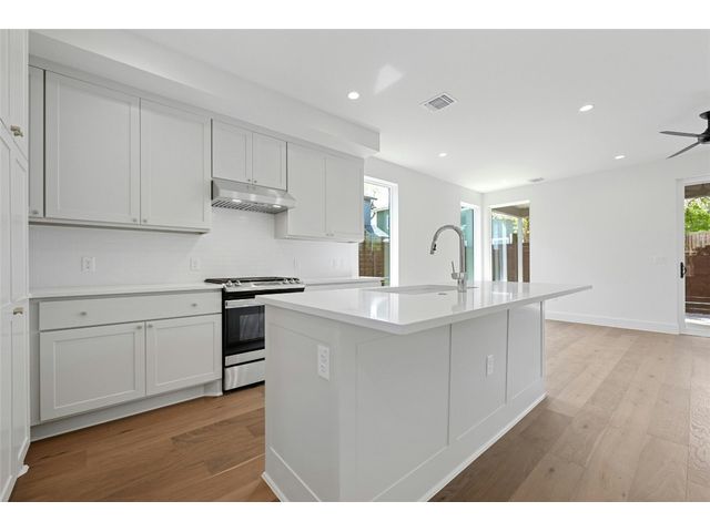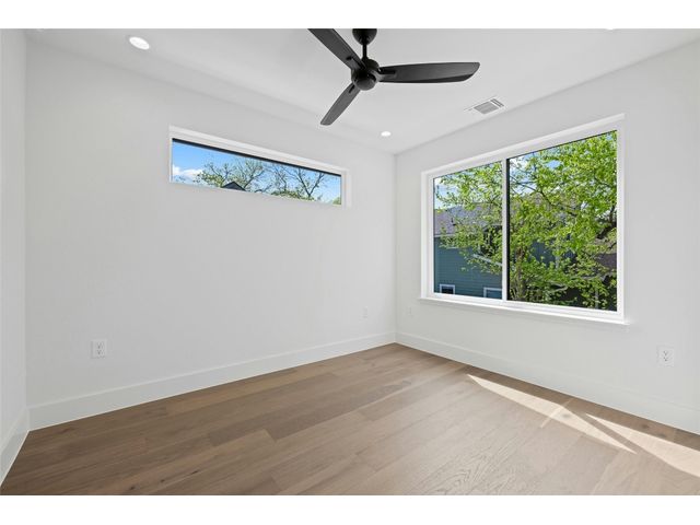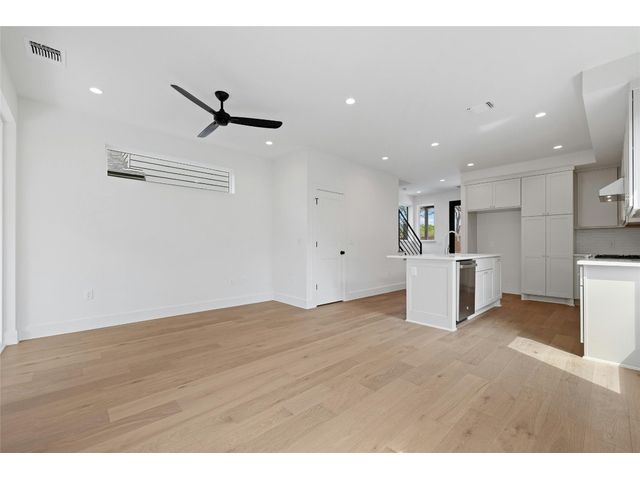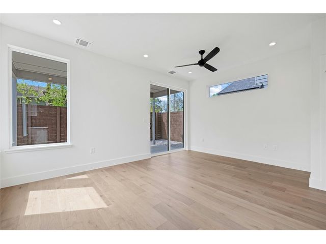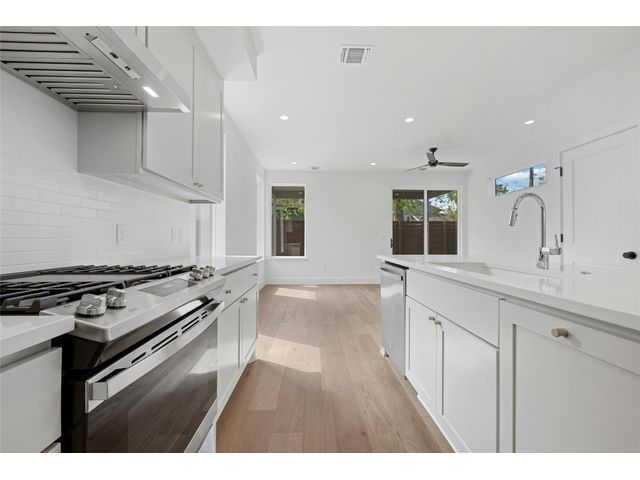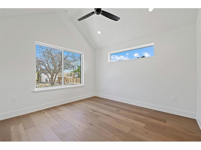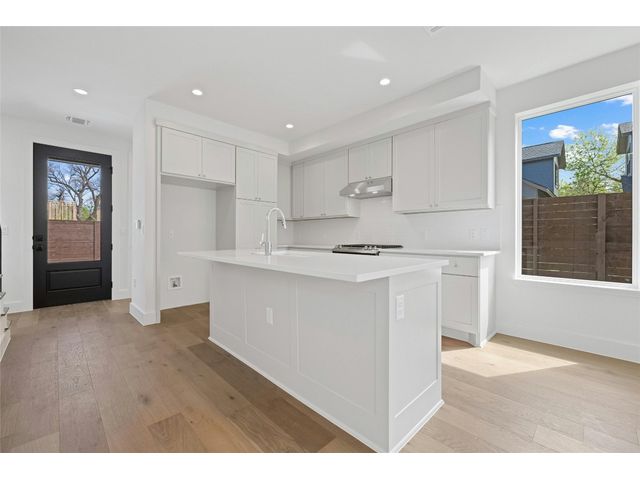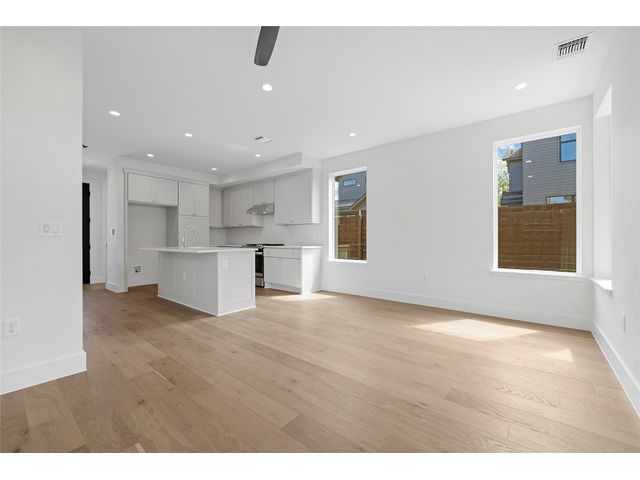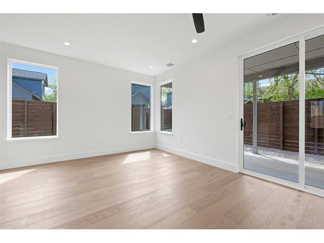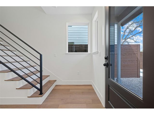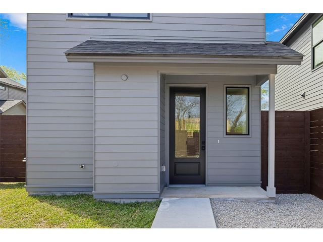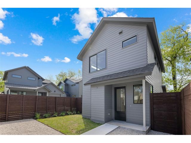 Step into your dream custom-built residence nestled in this highly-coveted East Austin neighborhood. This thoughtfully crafted home seamlessly blends smart and bold design elements throughout. As you enter, you'll be greeted by the expansive open kitchen, a hallmark of contemporary living, boasting top-of-the-line construction upgrades. The soaring ceilings and ample windows flood the space with natural light, creating an inviting atmosphere. Sleek quartz countertops and modern wood flooring add a touch of elegance, enhancing the kitchen's aesthetic appeal. Step outside to discover a spacious and fully fenced backyard, offering a private retreat for relaxation and outdoor activities. The full sprinkler system ensures lush greenery year-round. Upstairs, the primary suite awaits with its generously sized bedroom, ample closet space, and a luxurious bathroom designed for pampering and rejuvenation. Centered in a vibrant community, you'll find yourself just moments away from Govalle Park and the picturesque Walnut Creek Trail. Don't miss out on this exceptional opportunity - schedule a viewing today and immerse yourself in the epitome of modern living in this bespoke classic.