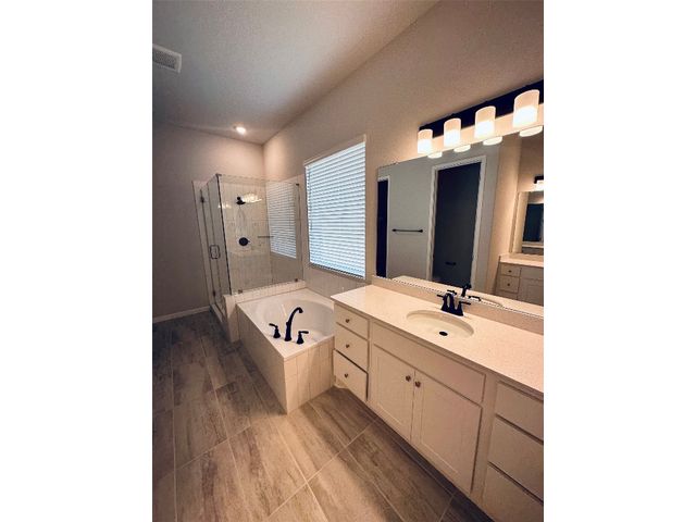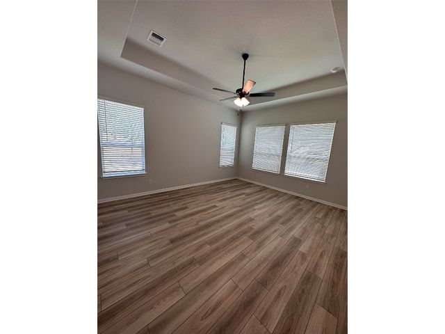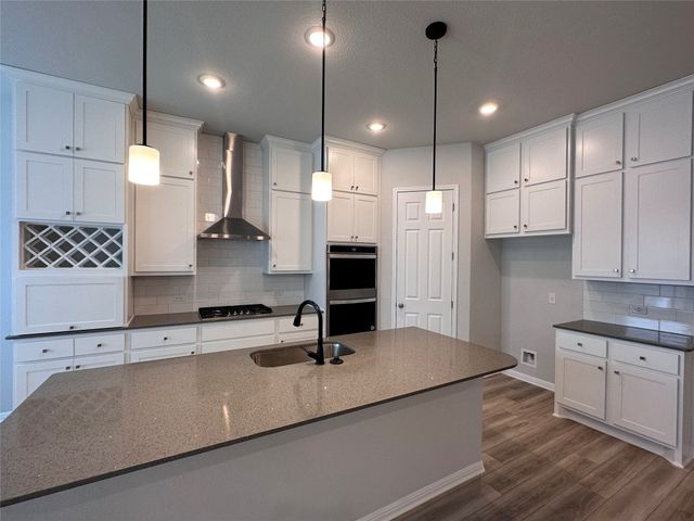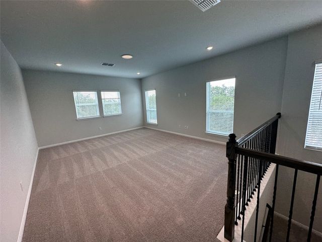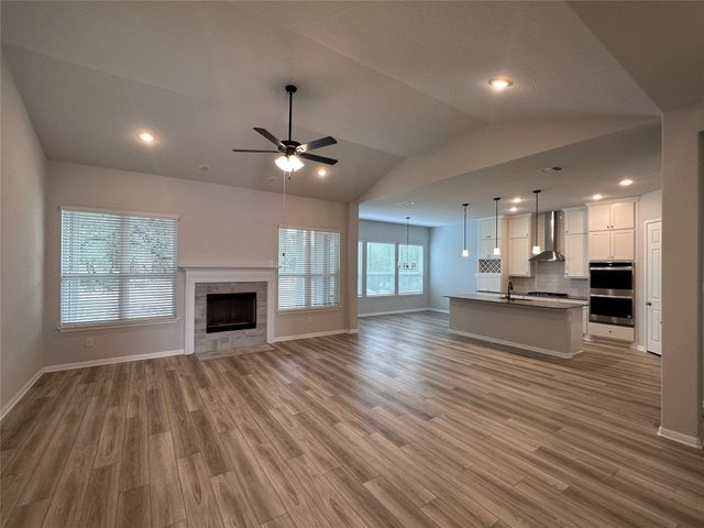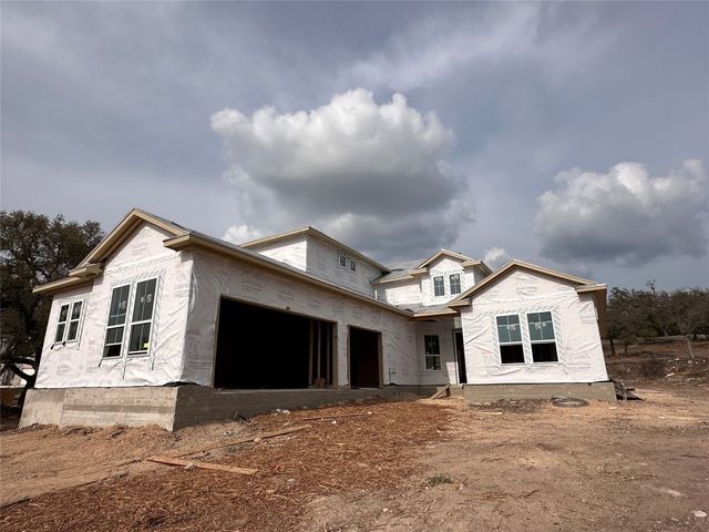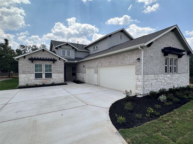 This beautiful 5 bedroom home sits on a one acre lot with complete frontal landscaping and natural trees giving purpose to the spacious and deep backyard. The floorplan has beautiful features and finish outs with a dynamic open floorplan layout between the gourmet kitchen, living, and breakfast area while still maintaining a separate and organized feel of each communal area. This home has 3 full bedrooms and 2.5 bathrooms on the main floor so each person has their own space while still feeling connected at the center. The loft space/game room upstairs is a nice reprieve with windows overlooking the one-acre property’s back and side yard. The kitchen offers eat-in dining and a large island overlooking the whole space. In the master suite, design selections like his-and-hers vanity, garden tub, walk-in frameless glass shower, and remarkable dual walk-in closet spaces make for a grandiose primary suite. The outdoor living space is completed with a covered patio complete with a gas drop for grilling, a full irrigation system and sod in the front, back, and sides. Award winning Leander ISD school district that reports to Tom Glenn High School. Brand-new Larkspur Elementary School located in the neighborhood and brand-new Danielson Middle School less than 10 minutes away. Short distance from the amenity center which includes a pool, splash pad, fitness center, covered playscape and access to hike & bike trails.