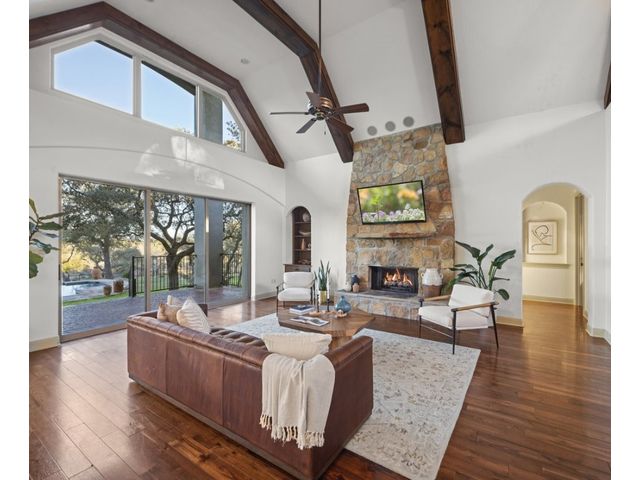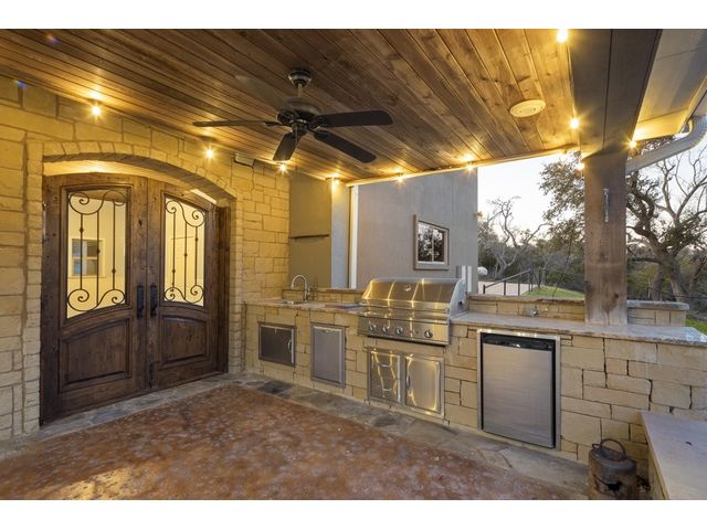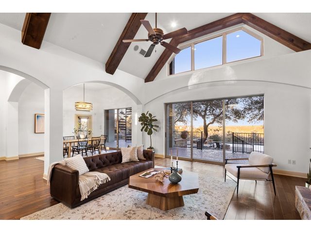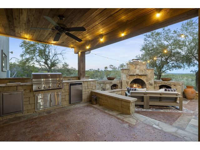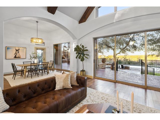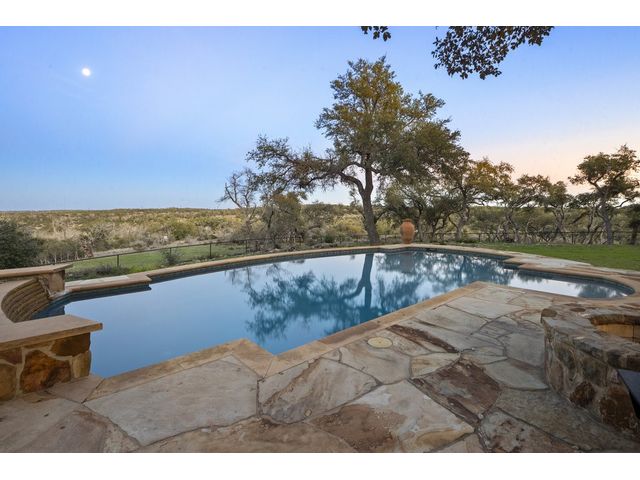 Exceptional Hill Country estate atop the ridge of Devils Backbone, w/ expansive views of the Wimberley Valley. This nature lover's paradise sits on 46.54 acres of rolling hills with wet weather creeks, abundant trees & wildlife. Great as a primary home or as a weekend retreat. The home is surrounded by a fenced acre of sprawling lawn. Open great room w/ vaulted & beamed ceiling features a wall of glass that frames expansive views of the pool, spa & multiple outdoor patios. Gourmet island kitchen features stainless steel gas cooktop, built-in wall oven, micro, built-in refrigerator, built-in wine refrigerator, buit in ice maker, & huge walk-in pantry. The abundance of storage in this kitchen would be the envy of Martha Stewart! Kitchen is open to the dining & great rooms, so the cook always feels a part of the action! Primary suite on main level, 3 en-suite bedrooms on upper level & an oversized game room w/ a full ensuite bath. Separate study on main level accommodates “working from home,” especially with Seller's installation of the Starlink internet equipment. Richly finished hardwood floors, beamed and vaulted ceilings, floor to ceiling stone fireplace, & abundant built-ins indicate this home was designed for peace & comfort. Generous bedrooms, all w/ ensuite baths. 8 Tv's will remain in this house! The pool/spa are complemented by a very large multi-terraced patio, plus outdoor cooking center, stone fireplace, & separate fire pit. Sellers incorporated breezeway to create very functional/practical mud room. Over-sized, attached 2-car garage w/3 coat epoxy floor finish, plus detached metal car barn/workshop w/ two ten-foot high automatic doors & workshop/man cave area. Low taxes afforded by an agricultural exemption. Recently installed solar panels are an added bonus. Just 12 minutes from downtown Wimberley, the epicenter of arts, gastronomy, and culture in the Hill Country. Enjoy "off-grid" privacy with the convenience of city life just moments away.