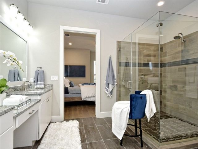 Welcome to the Enclave at Escondera, a collection of 35 condominium residences within a gated community minutes from downtown Austin, The Lantana Place and Hill Country Galleria shopping centers. This unit (the Madera L floor plan) offers designer selected finishes throughout and boasts not one, but two expansive living areas that offer the perfect blend of comfort and style. On the main level where you can spend the majority of your time, you’ll find the owner’s suite with a seating area, an elegant bath and spacious walk-in closet. There is also an open living/dining area with soaring 14.5’ ceilings and French doors leading to a patio with fabulous views of the preserve. There’s also a gourmet kitchen, showcasing stainless steel appliances, a dinette, private study with an adjacent half bath, laundry room, gas fireplace and beautiful engineered flooring. The lower level offers a second living area or media room and mini kitchen with cabinets, dishwasher and refrigerator. There is also a large guest bedroom with a seating area, large walk-in closet and doors that open onto a delightful patio, which also has views of the preserve. Enjoy the convenience of an onsite fitness center to ensure your fitness remains a priority and cool off during the warm Texas summers in the pristine pool, located on the neighboring property, Escondera. This lock and leave home offers luxurious urban living at its finest, where sophistication meets convenience and each day will feel like a retreat.