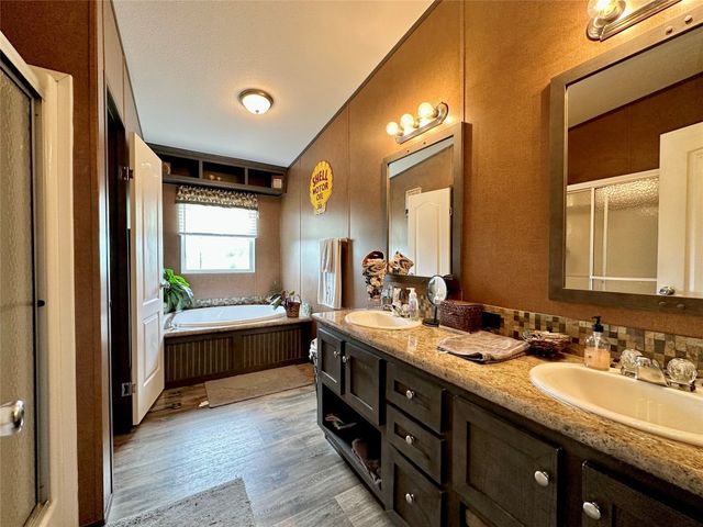 INVESTORS, INVESTORS, INVESTORS! This unique property offers SO MUCH opportunity. There is not one, but TWO homes located on this property and that's not all! One is a '15 manufactured home, 3Bed/2Bath, approx 1,536 sqft, in-law floor plan, w/ the kitchen opening up to the living area. This home features a cozy country lifestyle. When you walk in you are greeted w/ a spacious living area that has a built in entertainment center. Following that you enter the kitchen w/ a large center island that has bar seating and a dining/breakfast area. The primary suite has a large walk-in closet, and complete w/ a spacious master bath w/ a soaking bathtub and walk in shower. The 2nd home is a '90 manufactured home, 3Bed/2Bath, approx 1,456 sqft, w/ a in-law floor plan as well. With some TLC and a little love this home has so much potential. This home features a large slabbed garage w/ work areas on both sides. When entering thru the front door you are greeted w/ a spacious living area that features custom wood work, and a beautiful wood entertainment center. Thru the living you enter the dining and kitchen area where the custom wood work follows. When entering the home from the garage area you will walk thru a sun room/bonus room that has a hot tub spa that will convey w/ the property. There is a AC controlled office building that is being used as a small business. There is a barn w/ a covering and workshop area that has water and electricity. There is a water well that has a water softener in place that connects to both houses. Each home is connected to its own septic and electric meter, there is a third septic and meter off the side of the office building where a third residence could potentially go. OR you can connect to the city utilities that are available at the road. With the surrounding booming businesses and 300ft of road frontage this property could potentially be zoned for commercial use. The possibilities are endless! You don't want to miss out on this one!
