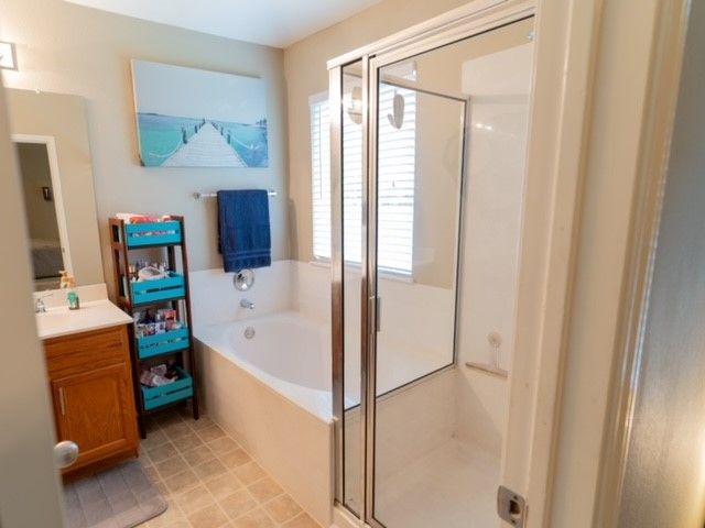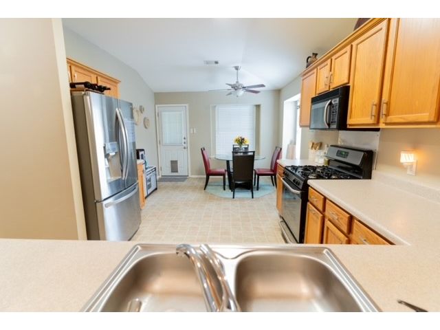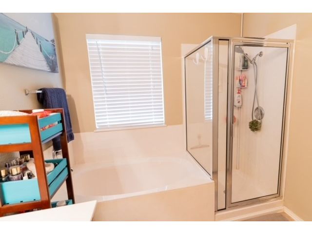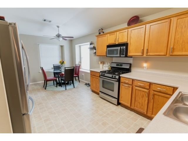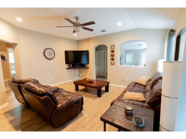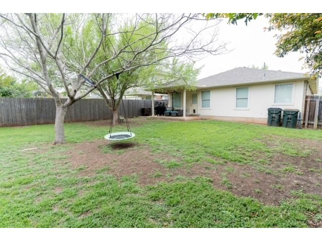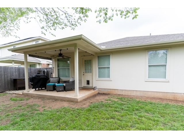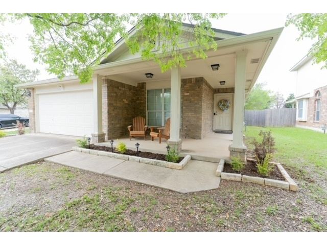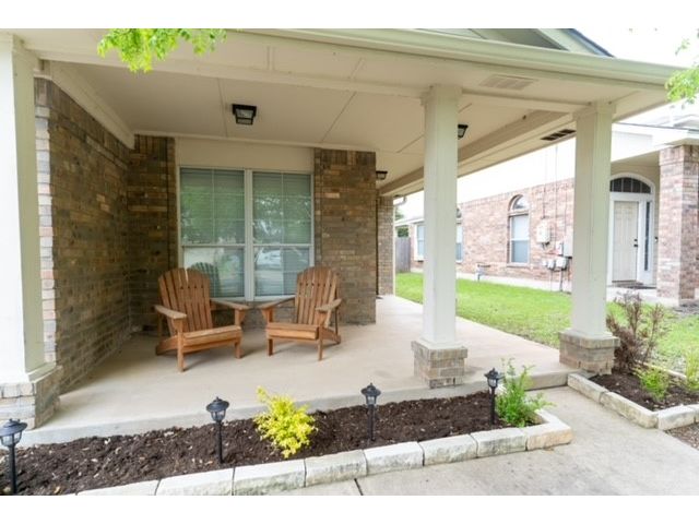 Well sought after Block House Creek neighborhood! Many amenities including: 2 large community pools, tennis courts set up also for pickle ball, a basketball court, 2 play scapes, many walking/riding trails, disk golf course, large pavilion, and charcoal grills. Beautiful home located in a col-de-sac at the very corner of the neighborhood. A large covered front patio will allow plenty of space for you to relax. The front yard has mature trees as well as nice flower bed. As you enter the home you will find the spacious living room with updated flooring. This floor plan leads through the living room into the kitchen. A serving hatch between the kitchen and the living area gives it that open floor plan feel that flows as well as provides those in both rooms a sense of togetherness. To the front of the house is a carpeted room that could be used as an office or a bedroom. You will find another carpeted bedroom and a full size bath through a hallway off the living area where you will also find the second entrance to the house through the garage. Off the kitchen is the master suite with a walk in closet and a bathroom featuring a garden tub and separate walk in shower. The backyard has a covered patio with a fan. The yard is very large with mature trees as well as a gate that leads to a greenbelt. This is also great access to the HEB center within walking distance. This home also features a new roof and gutters (July 2023), new water heater (2023), updated blinds throughout, and the outside paint was updated (2017). *Owner is a licensed real estate agent in the state of Texas*