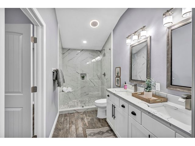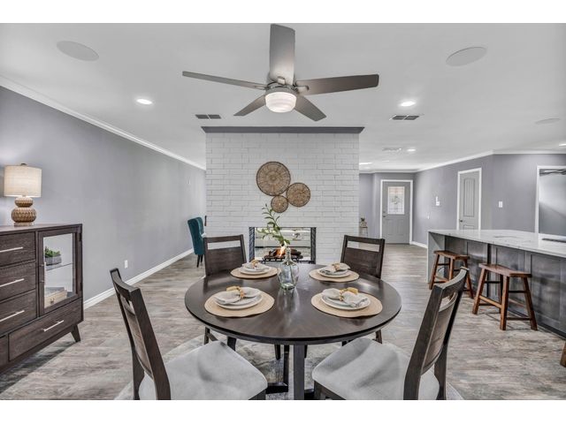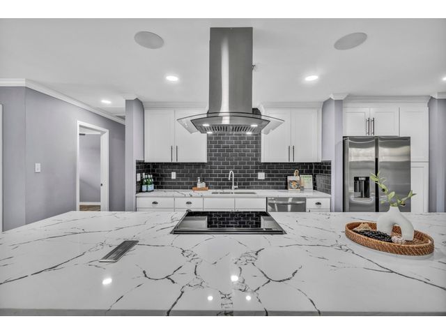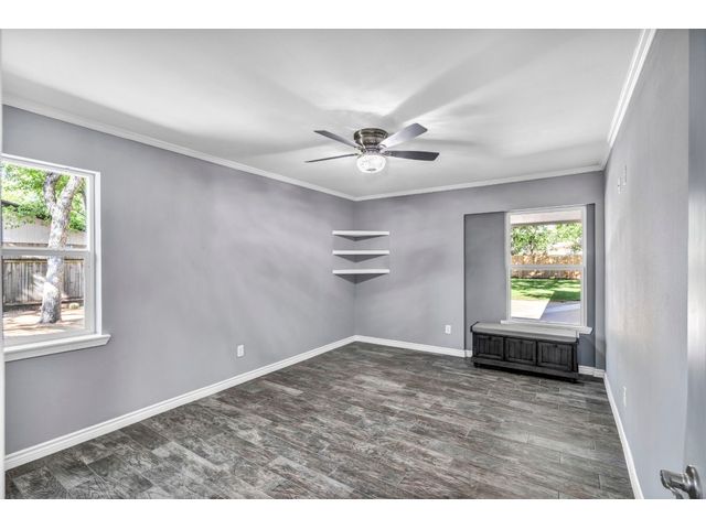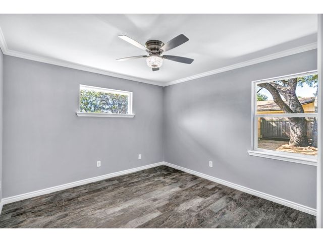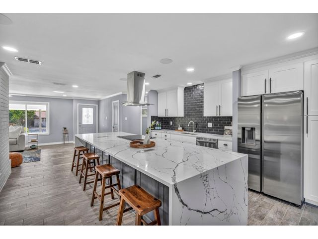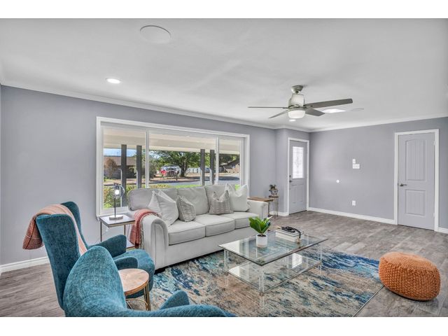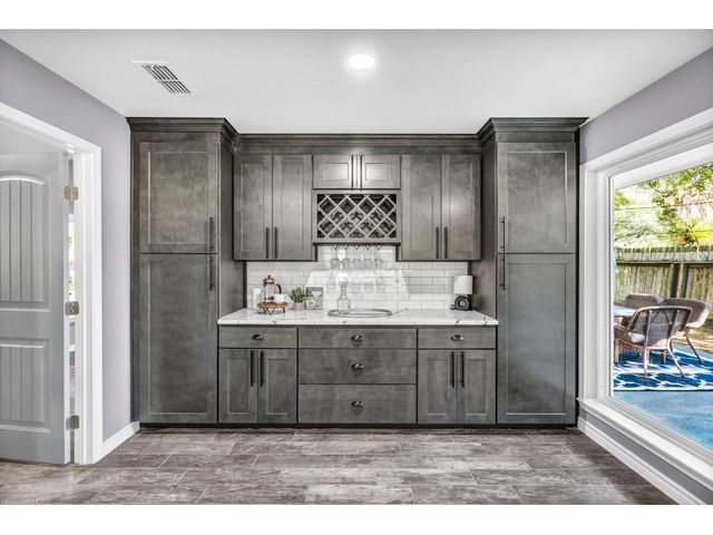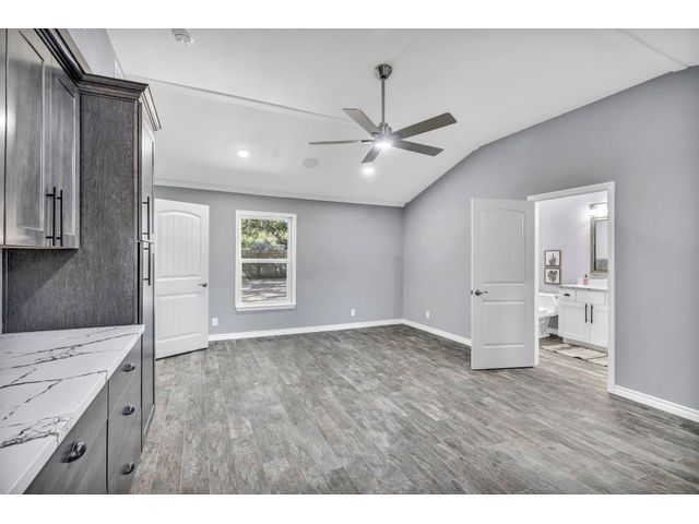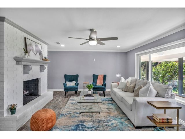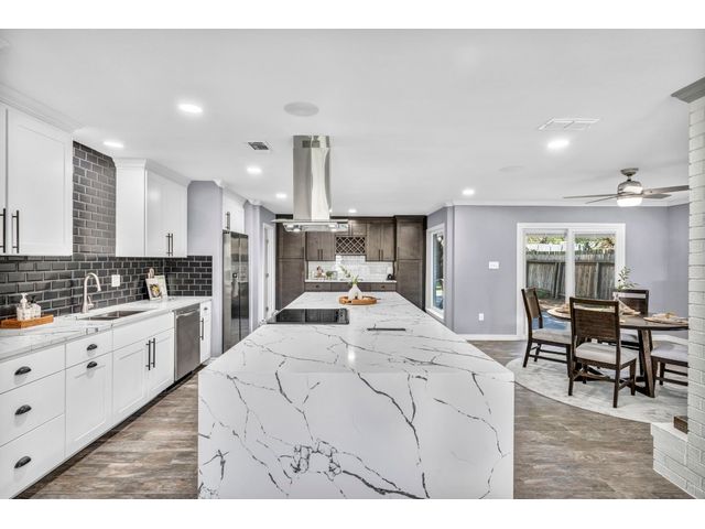 Rare find. Austin chic in the heart of Marble Falls. This charming, like-new 4BR/2.5 bath home sits on an oversized, beautiful lot and hasbeen thoughtfully renovated from top to bottom. The open and airy living/kitchen/dining area is an entertainer's dream. Porcelain wood-look tile throughout. The generous waterfall kitchen island offers additional seating for up to six, and the kitchen finishes will satisfy eventhe pickiest chef. Secluded master suite offers a walk-in closet, double sinks and a spa shower. Access the oversized, privacy fenced yard via the main living area or directly from the master suite. Relax with coffee or cocktails in the shade of magnificent century oaks and listen to the birds. Everything is new - windows, doors, full kitchen and bath remodels, new plumbing and electrical, new fence and landscaping, new electric gate and exterior LED motion lights. Bluetooth sound system in living areas and master suite. Programmable, wifi Thermostat. Convenient location close to HEB and a five minute drive to downtown. No HOA. New Roof. Seller financing available