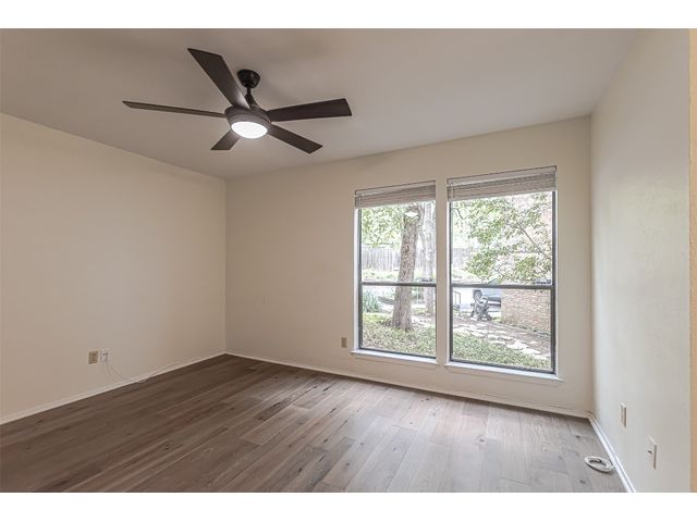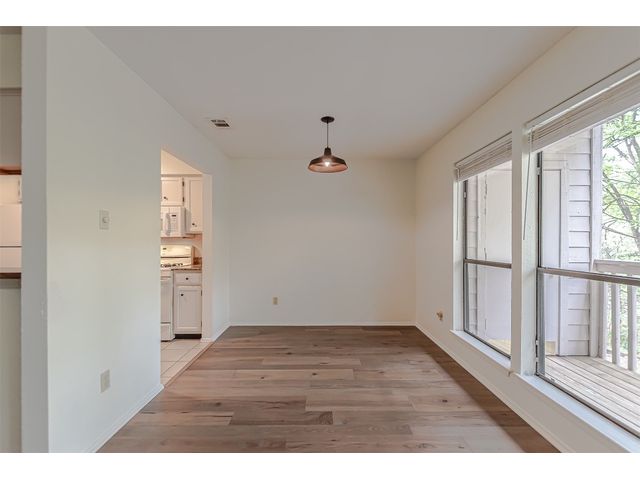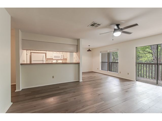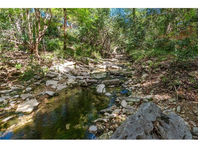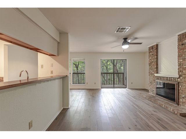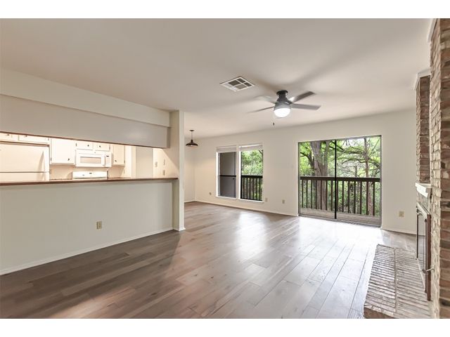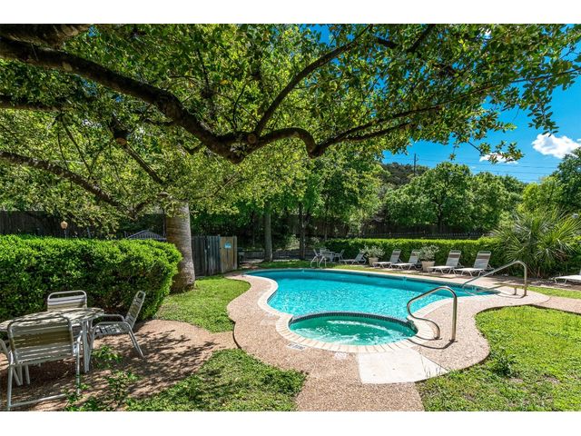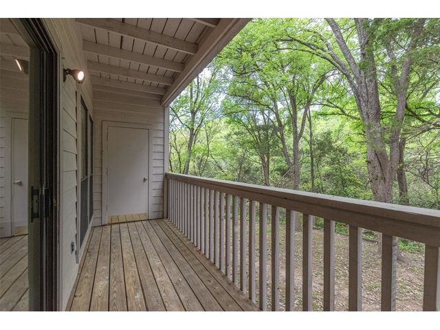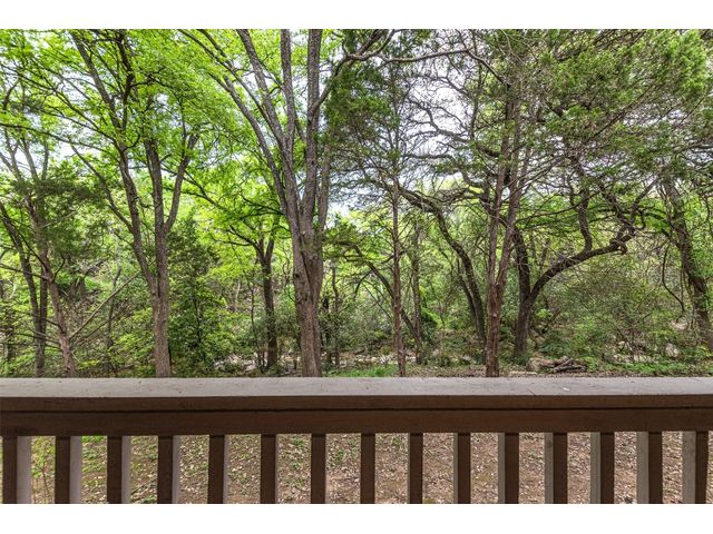 Wonderful ground floor single story condo on the edge of Northwest Hills! Enjoy the peaceful setting overlooking the creek & greenspace from you own private covered deck*Amazing glass sliding door & dining room windows open up to the tranquil views*Beautifully updated with laminate & tile floors throughout, granite counters, solid mahogany wood bar & ample storage in the kitchen*Recent paint throughout*Updated primary bathroom with marble walk in shower & frameless glass door, updated counters in both bathrooms*Spacious unit with good storage, updated ceiling fans, cozy brick wood burning fireplace w/ gas logs, separate storage on wood deck, laundry closet off secondary bathroom with stackable washer & dryer*Large walk in closet in primary bedroom*Nestled in the back of the complex near one of the 2 community pools*This central location is minutes from downtown & shopping off Anderson Lane, Burnet Road, The Arboretum & The Domain*Easy access to Mopac, 183, 2222 and 360*This unit is clean and ready for new a new owner!
