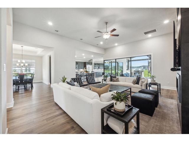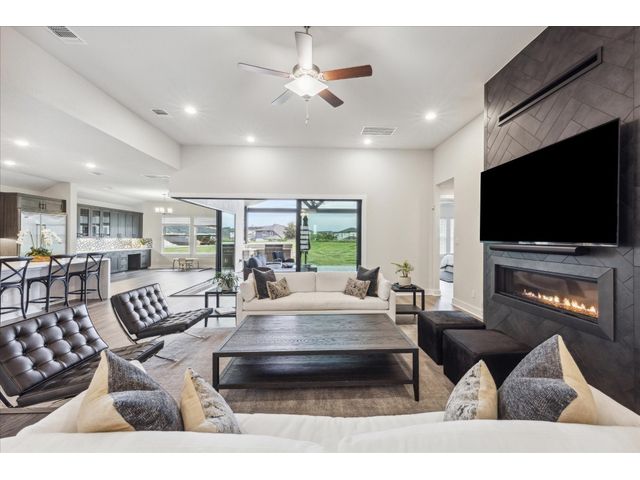 Seller financing available- Nestled in the sought-after Rough Hollow community lies a rare gem – a newer build that lives like a one story home, standing proudly on 0.75 acres. As you step inside, you're greeted by an expansive, light-filled space, boasting soaring ceilings and double sliders that beckon you towards the inviting covered patio, large area for a future pool, creating the ideal setting for hosting gatherings and enjoying the outdoors. The heart of this home, the gourmet kitchen, has been extended to provide ample room for culinary creativity, adorned with sleek waterfall counters that add a touch of sophistication. With the primary bedroom conveniently located on the main level, this home offers both comfort and practicality. Indulge in the ultimate spa-like experience within the confines of the primary suite, offering a tranquil retreat from the hustle and bustle of daily life. With a total of 5 bedrooms, 4.5 baths, and additional bonus and theater rooms upstairs, there's no shortage of space for relaxation or entertainment. The 3 car garage, featuring epoxy floors and clever storage solutions including ceiling racks, ensures that both your vehicles and belongings are well taken care of. Moreover, with insulation and temperature control, it provides a comfortable environment year-round. Every corner of this home exudes quality and craftsmanship, with upgrades that must be seen to be truly appreciated. It's a testament to the meticulous care and attention poured into creating a lifestyle that's as luxurious as it is functional. Owner financing is available option.