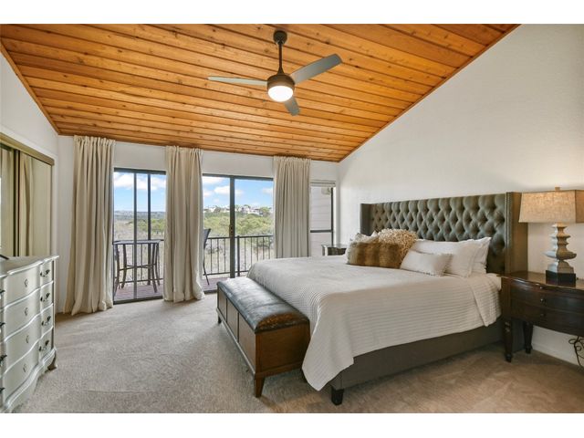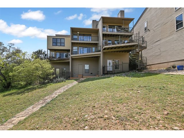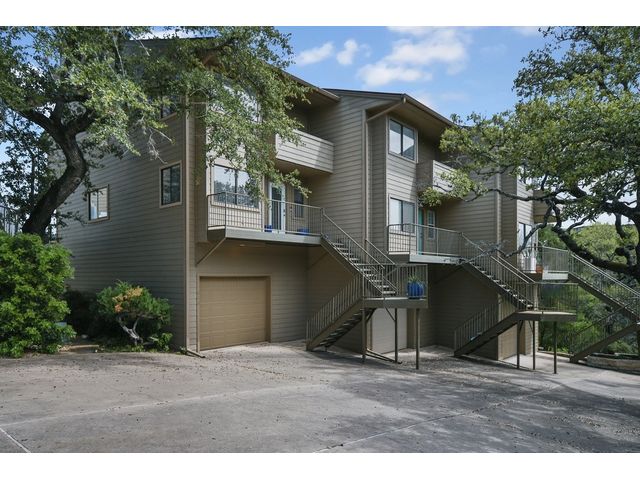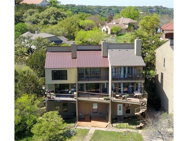 A Lake Travis Retreat for weekends or full-time life at the lake, 340 Harbor Drive has been beautifully updated and remodeled throughout. Just steps from the waterfront shoreline, located in a small townhome complex of only 5 units, Harbor Cove is tucked into the gated community of Ridge Harbor on Lake Travis. Step into the kitchen, dining & living which open to BIG views and a nice covered deck. From this level, head up to the spacious primary suite with private deck. The primary bath features an oversized walk-in shower. Also on this level is a second bedroom with walk-in closet and en-suite full bath. Behind the one car garage is a nicely finished third bedroom currently used as a bunk room which is accessible via a private entrance off a small fenced yard. The bunk room has an en-suite bath with shower. Community amenities include a pool, waterfront park area, tennis & pickle-ball courts plus a play area for the children. A marina is anchored off the waterfront park shoreline. The sellers of 340 Harbor Drive have a large slip with hydro-hoist lift suitable for a wake board style boat which is available to purchase. Additionally, all furnishings and appliances at the home are negotiable - making this a wonderful turn-key lake retreat, ready for immediate enjoyment! Truly one of the BEST areas of Lake Travis - come for a visit and you will understand why you will want to make this YOUR new Home at the Lake! (*Also 4 Lease - Furnished, $2275/month, NO Pets.)