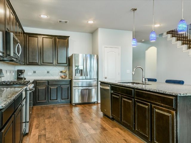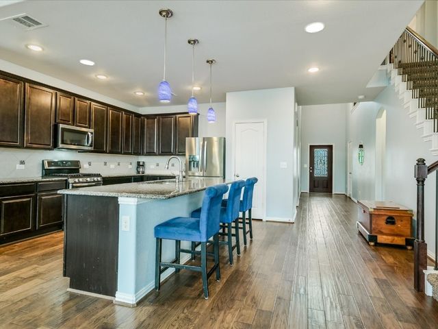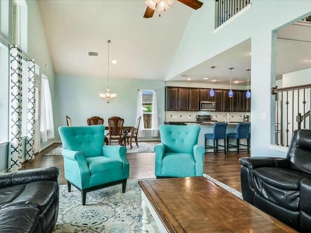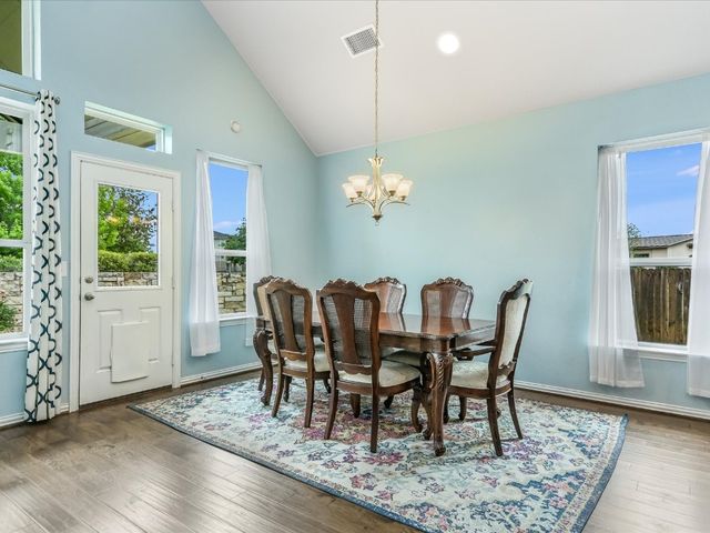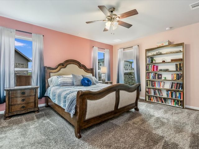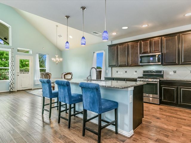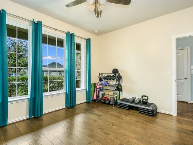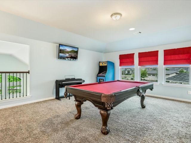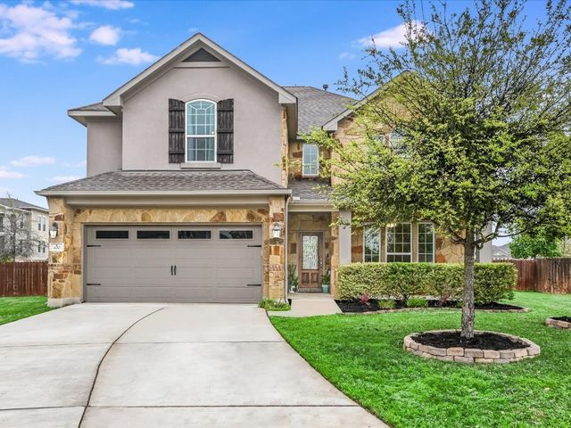 Great spacious newer home situated on a cul-de-sac in Oak Creek and walking distance to the POOL/Playground area and also a short walking distance to Plains Elementary within the Neighborhood. Home features a rare 5 bedrooms and 4 full baths. Nice Open Kitchen with granite and stainless steel. Hardwoods on Main level. Primary Suite on Main level along with another bed/full bath. Awesome Game room upstairs and a cool media room space. Super close to Leander CapMetro Rail. New Huge Northline Development being Built close by.Northline is Leander's new downtown district - a unique destination where contemporary design meets the character and charm of Texas Hill Country tradition. This home is very spacious and has a great floor plan. Home offers an in-ground sprinkler system, energy-efficient windows, and lots of natural light.