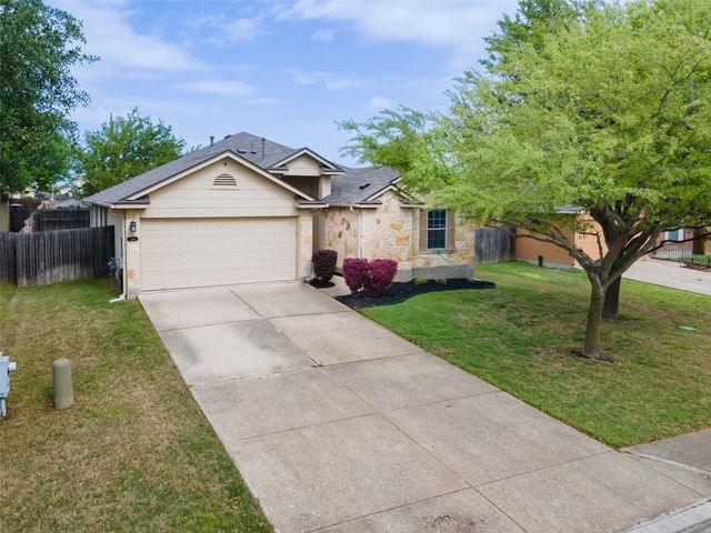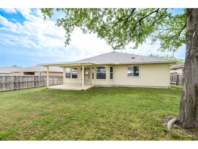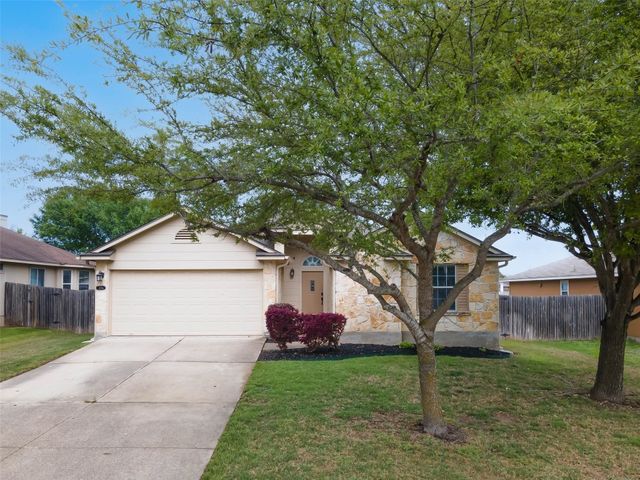 **LOCATION LOCATION!** Enjoy quiet neighborhood living while having great access to Austin and San Marcos. This well maintained and updated home features an updated kitchen w/ granite countertops and gas appliances as well as a large family room with gas fireplace. New flooring in high traffic areas and blinds throughout. Other features include a large master bedroom with attached office that could double as a secondary closet or nursery. The master bath features updated fixtures, quartz countertops, and dual vanities with an attached walk in closet. Outside, take advantage of the shade and enjoy the outdoors with mature trees and a large covered patio. Great neighborhood park and close to dining and shopping. Foundation leveled and new roof/gutters installed Summer 2023. HVAC new 2019. Security cameras and appliances convey!