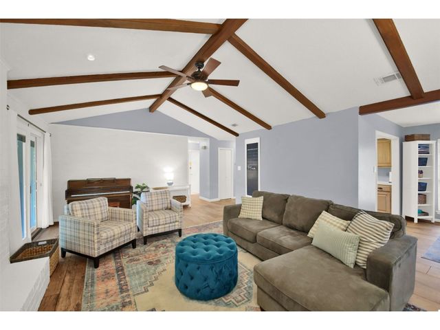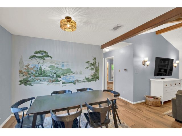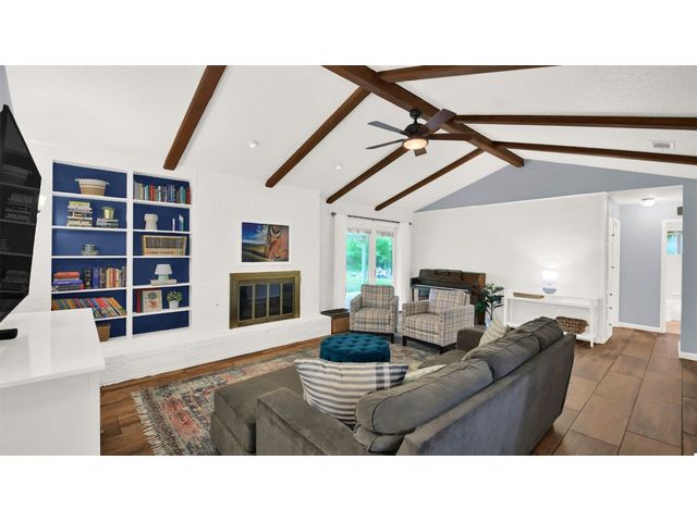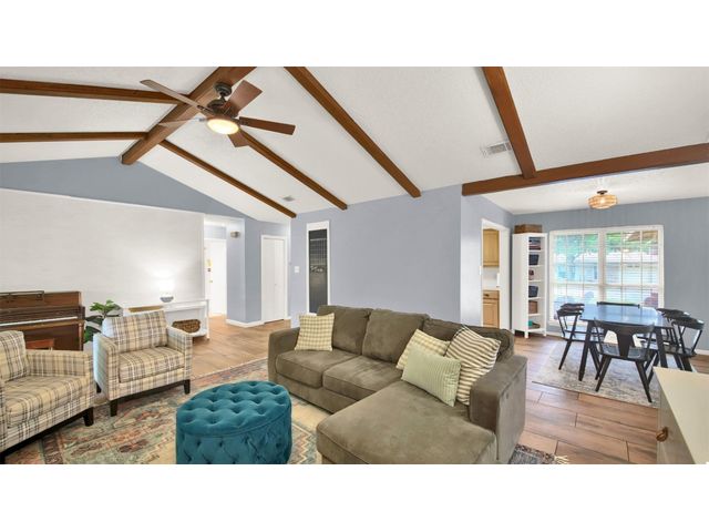 5.75% mortgage rate with 3% down and no PMI available on this unique mid-century gem nestled in North Acres! Boasting striking vaulted ceilings, charming wood beams, original built-ins, and an expansive backyard, this home is a rare find. Just minutes from tech giants like Samsung and Apple, as well as the excitement of Austin FC Q2 Stadium and the Domain, convenience meets tranquility here. Enjoy the immense backyard surrounded by trees, offering privacy and ample space for relaxation and recreation. Inside, discover a versatile layout with a mother-in-law plan featuring 3 spacious bedrooms and 2 bathrooms. Recent upgrades including luxury wood-like tile, fresh paint and a brand new roof! Step into a home that seamlessly blends vintage charm with contemporary convenience - Welcome Home!