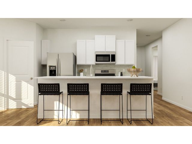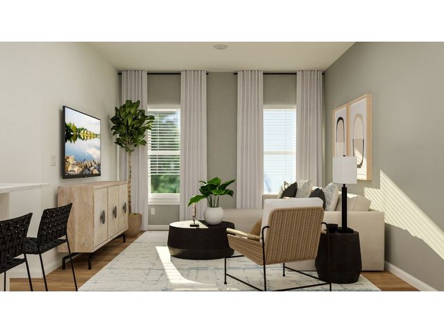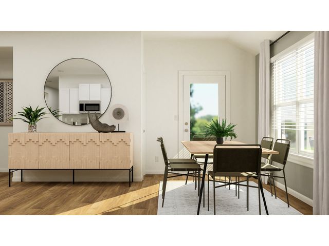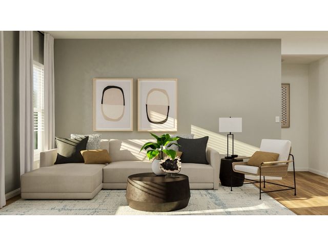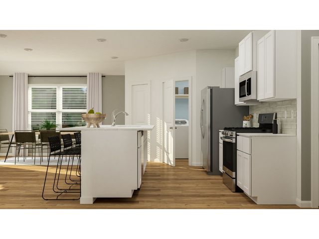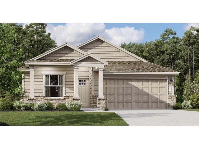 This low-maintenance, single-story residence features an open floorplan shared between the living room, dining room and kitchen, situated at the heart of the home. The owner’s suite can be found at the back, while two secondary bedrooms are located off the foyer. A covered patio offers seamless indoor-outdoor entertaining.