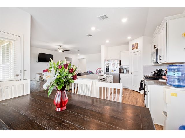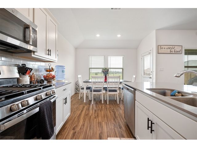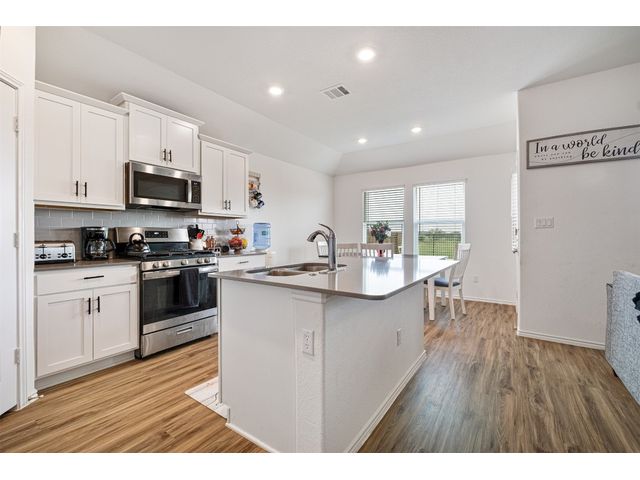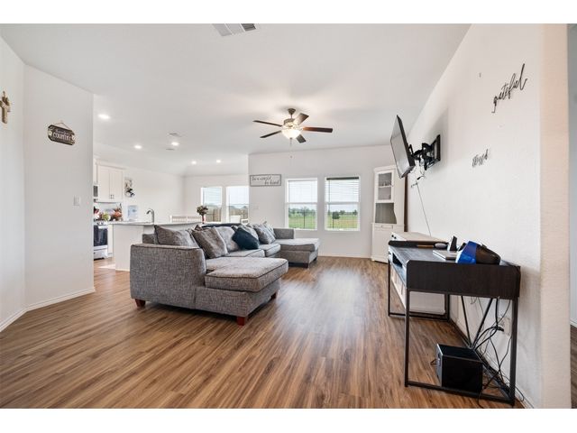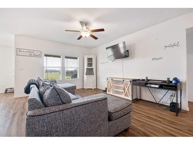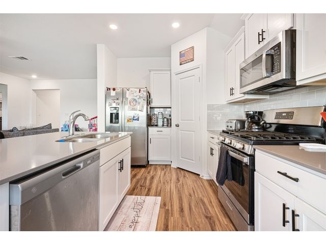 Welcome to this lovely single-family home located in a highly sought-after neighborhood, where the perfect combination of comfort and convenience awaits you. As you step into this beautiful home, you will immediately notice the thoughtful design and inviting atmosphere. Boasting 3 bedrooms, 2 bathrooms, and a flex space, this residence offers ample space for your family to enjoy. The interior features a range of upgrades that enhance the beauty and functionality of the home. The spacious and well-equipped kitchen, complete with a center island, provides ample room for meal preparation and entertainment. The quartz countertops complement the stainless steel appliances, creating a space that is both stylish and easy to maintain. The open-concept design seamlessly connects the kitchen to the dining area and living room, allowing for cohesive and inclusive gatherings. For those who love spending time outdoors, the backyard offers endless possibilities, from hosting barbecues to simply enjoying the view of the walking trails beyond. This home is further equipped with modern conveniences to ensure comfort and security. A Ring doorbell, thermostat, and security system provide remote control and monitoring capabilities. But the home's appeal extends far beyond the boundaries of its four walls. Residents have exclusive access to a variety of community amenities, including a pool, state-of-the-art play structure, extensive walking trails, and Greenbelt dog park. Additionally, pickleball courts provide a great outlet for some friendly competition, neighborhood picnic tables offer an opportunity to socialize and unwind with family and friends, and the new elementary school will be a welcome addition to our BISD schools. Don't miss this incredible opportunity to own a home that effortlessly combines style, comfort, and an array of amenities. Contact us today to schedule your tour and start envisioning the life you could lead in this remarkable property.