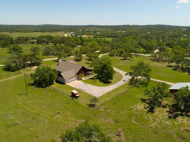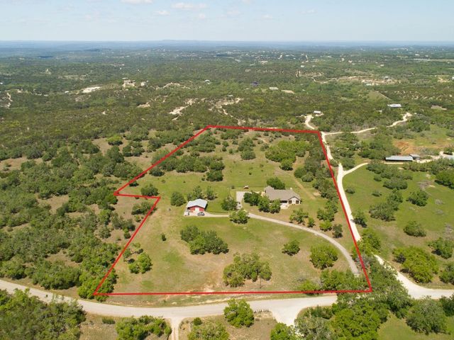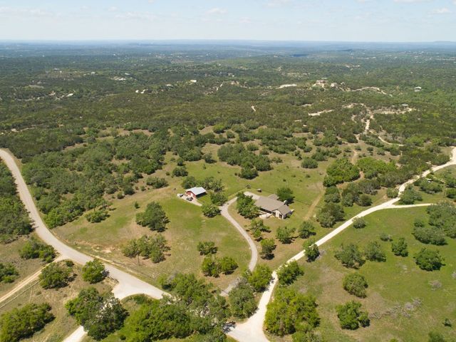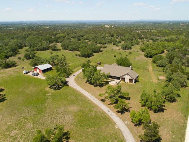 Lots of Land and Trees! This ranch style hill country home sits on 16 acres of plush useable land with mature trees with private gated entrance minutes from Dripping Springs. The home itself includes 4 bedrooms, 3 full bathrooms, a large breakfast room and formal dining. The sunken living room has soaring ceilings with a central wood beam, and stone clad wood burning fireplace. All rooms are flooded with natural light from the many windows and high ceilings. This property features massive hill country views in many locations throughout the acreage, mature oaks plus a three stall horse barn and excellent pasture and useable grazing land. The property has a wildlife exemption for low taxes, see agent for details. The property is gated and fenced with the exception of the new property boundary adjoining the 42+ acres next door. Located within exemplary DSISD, property is unrestricted and offers complete privacy and seclusion.