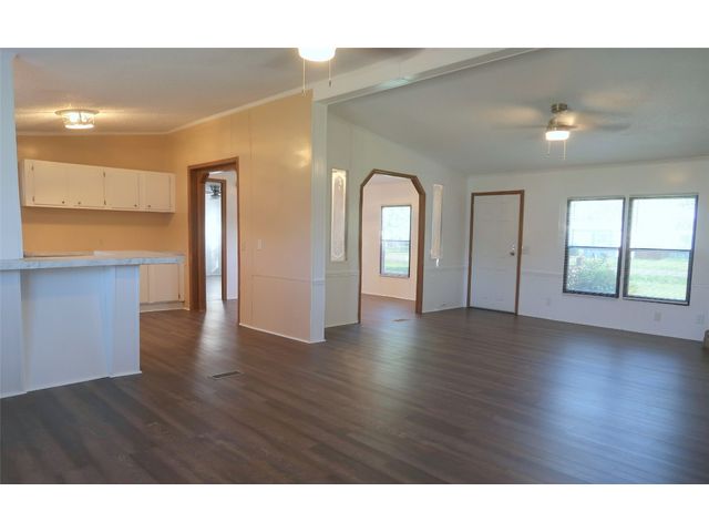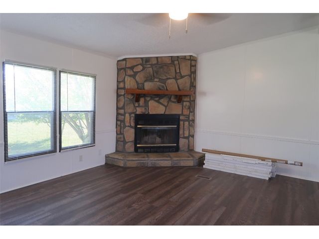 If you are looking for a home with four bedrooms and a large lot in a convenient location in Georgetown, look no further! This spacious mobile home and lot is located in a community that is convenient to Toll 130 and a short drive to Georgetown's lovely town square. This property's .42 acre corner lot has mature trees and no HOA! This open concept home is approximately 1792 square feet, and includes four bedrooms and two full baths. The primary bedroom has a large walk-in closet and a spacious bathroom that features a soaking tub, a stand-up shower, and his and her sinks. The living areas flow nicely and have abundant natural light. The living room has a wood-burning rock fireplace. The kitchen has lots of cabinets and an eat-in counter near the sink. The mud room has space for a washing machine, dryer, and an additional refrigerator or freezer. This home was built in 1995 and has recently updated sinks, toilets, light fixtures, blinds, door, flooring, paint, and appliances. The house was recently raised, and new metal underpinning was installed.