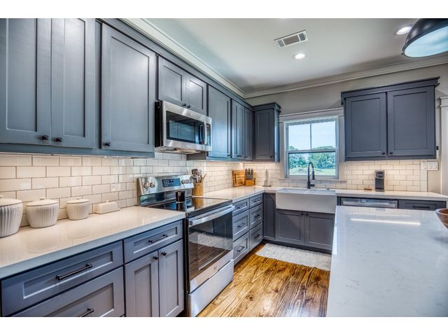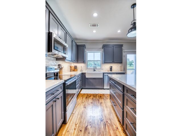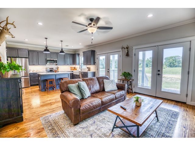 Welcome to your dream home! Nestled on +/- 9 acres under ag. valuation of serene countryside, this stunning 3-bedroom, 2-bathroom modern farmhouse offers the perfect blend of luxury and comfort. Step into the inviting living area featuring gorgeous real hardwood floors that span the entire first floor. Cozy up by the charming wood-burning fireplace. The kitchen is a chef's dream with granite countertops, abundant cabinet space, like-new stainless-steel appliances, and a spacious pantry for all your storage needs. Located on the main floor, the primary bedroom with en-suite bathroom is elegantly appointed with dual sinks, matching granite countertops, ample cabinet space, a grand walk-in shower, and a gracious walk-in closet. Upstairs features two comfortable private guest bedrooms, and a versatile flex room that can easily be transformed into an additional bedroom or study. The upstairs bathroom includes a shower/tub combo and continues the home's luxurious theme with matching cabinets, tile, and granite countertops. Outside, you'll find a 30x40 garage/shop on concrete slab with overhang and double roll up doors. This building can be used for extra storage, a workshop, or recreational space. This modern farmhouse is great for those seeking a peaceful rural lifestyle with all the modern conveniences. Don't miss the opportunity to make this beautiful property your forever home!