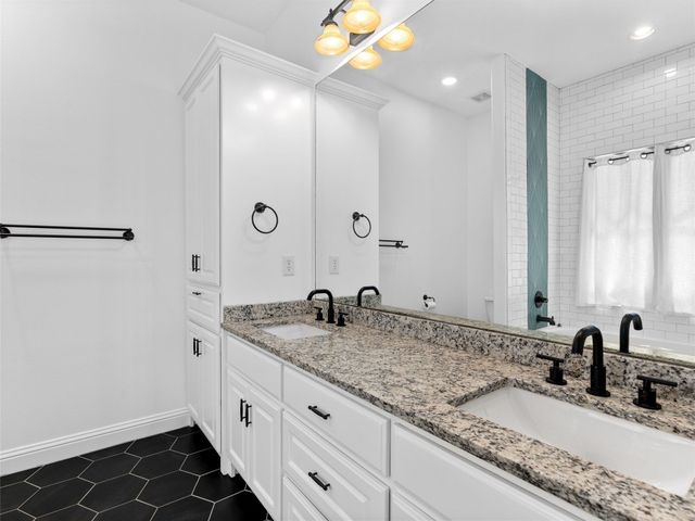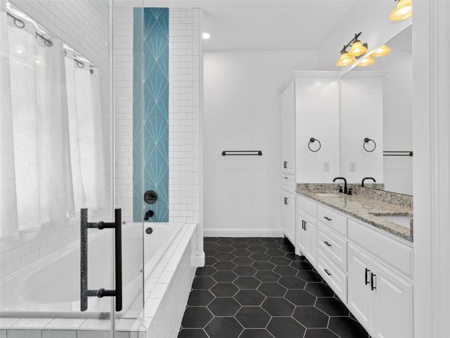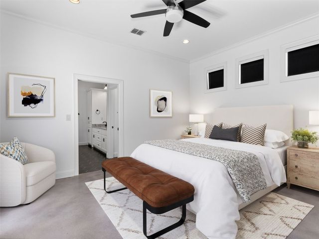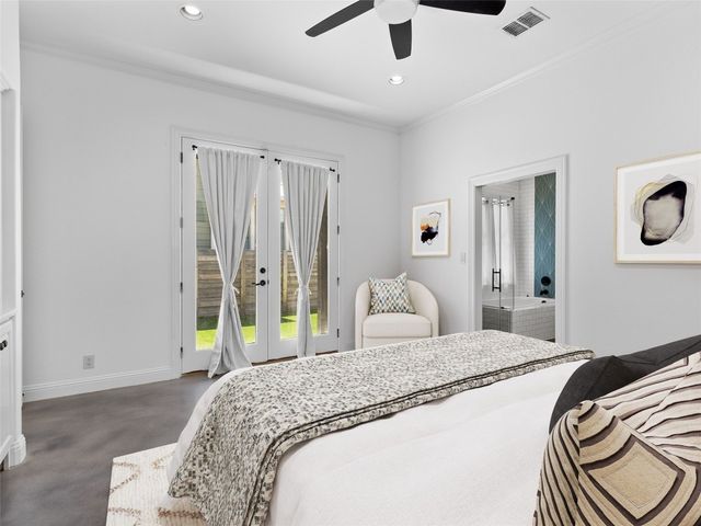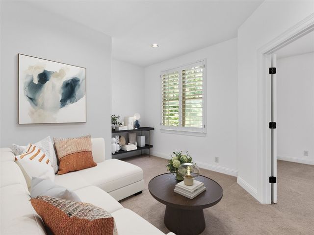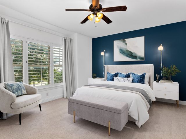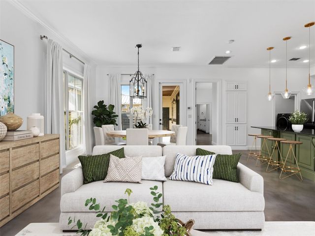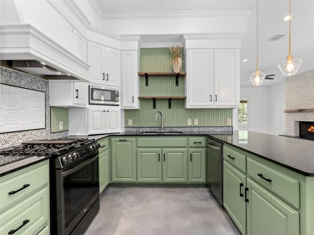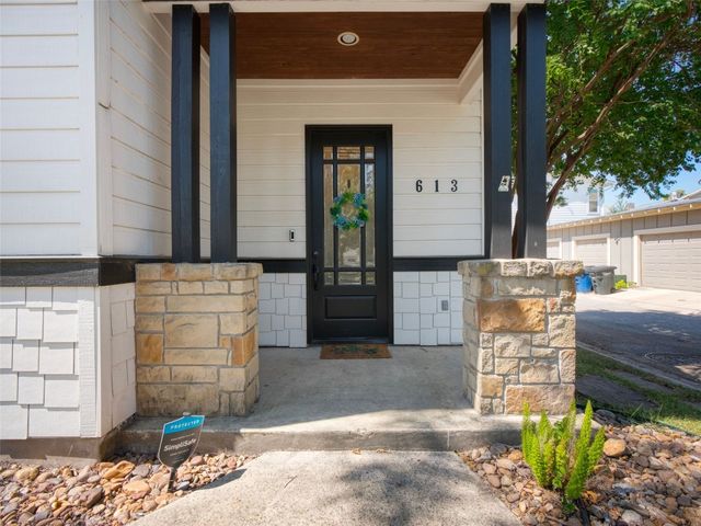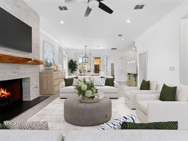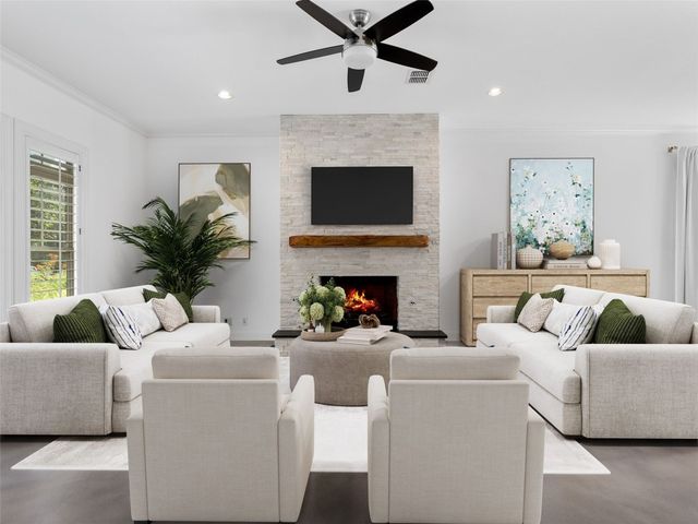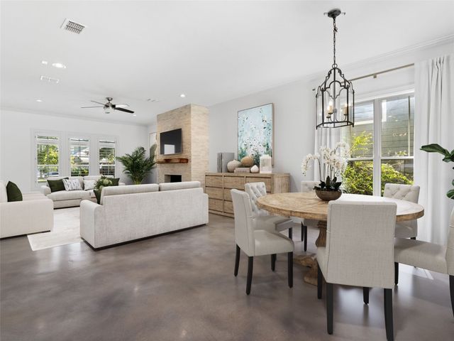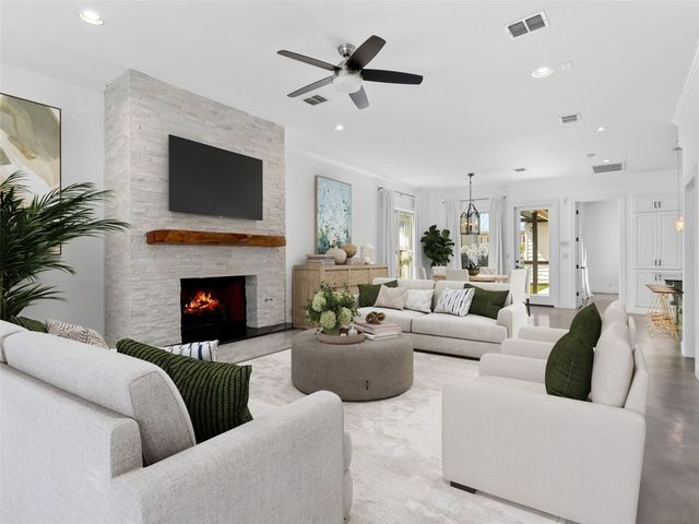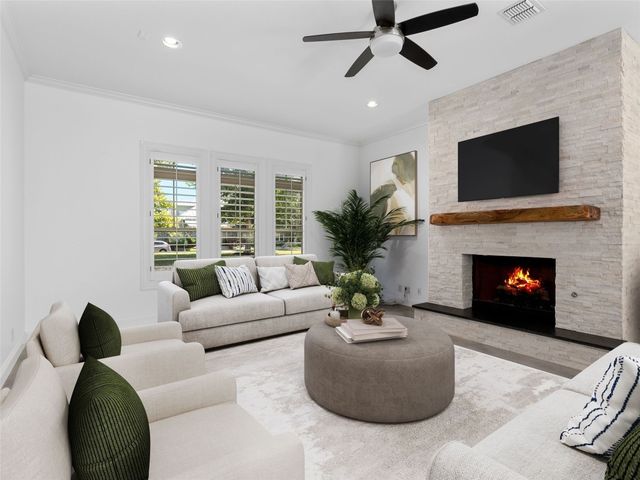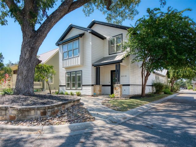 Discover the perfect blend of modern convenience and timeless charm in this stunning two-story home located in the picturesque Town Creek neighborhood in downtown New Braunfels. Situated on a coveted corner lot, this home boast exceptional curb appeal, surrounded by gorgeous mature trees. As you step inside, you're greeted by an expansive open living and dining area that seamlessly flows into a beautifully appointed kitchen. The living room features a striking stone gas fireplace, creating a cozy focal point, while large windows flood the space with natural light an offer tranquil views of the backyard. The primary suite, conveniently located on the main level, is a true retreat with a spacious walk-in closet, a full bathroom, and a versatile landing space perfect for an office or sitting area. The backyard is designed for low-maintenance living, featuring a covered patio and turf, making it the ideal spot for relaxing or entertaining. The home is completed with a rear entry two-car garage, boasting epoxy floors for a polished finish. This charming residence is more than just a house; it's a place to call home, offering the best of downtown New Braunfels living in the sought-after Town Creek neighborhood.