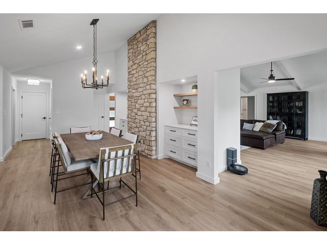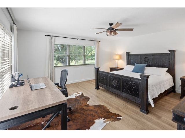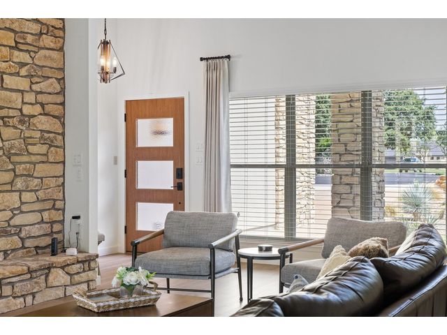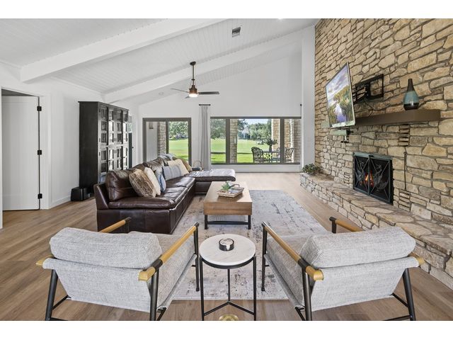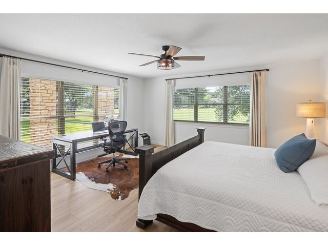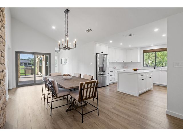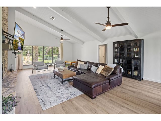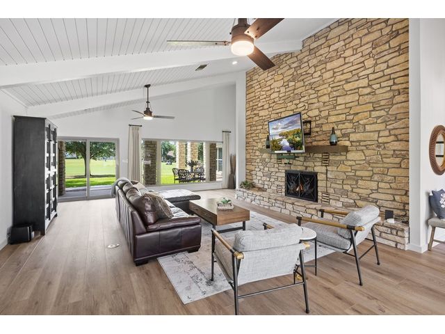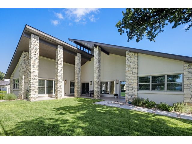 Experience unparalleled luxury in this meticulously remodeled home on the award-winning Slick Rock Golf Course in Horseshoe Bay. Enjoy breathtaking views of the fifth fairway through grand picture windows filling the home with natural light. The open layout connects the great room, dining area, and chef’s kitchen, making it perfect for relaxation and entertaining. The gourmet kitchen is a culinary masterpiece with custom cabinets, stainless steel appliances, quartz countertops, and a large center island. The adjacent dining area features a striking floor-to-ceiling stone accent wall with custom built-ins and floating shelves. The oversized master suite offers golf course views and ample space for a private sitting area or office. The luxurious en-suite bathroom includes double vanities, a large spa-like shower and a walk-in closet with custom shelving. Two additional bedrooms, each with an en-suite bathroom, are situated on the opposite side of the home for guest privacy. Step outside to the expansive covered patio and enjoy panoramic views. The home features soaring ceilings, new luxury flooring, solid wood doors, a new roof, updated exterior, and modernized interior. An oversized garage with epoxy flooring accommodates a golf cart. With resort amenities nearby (membership required) and short-term rentals allowed, this property offers exceptional luxury and investment potential. Discover your dream home in Horseshoe Bay today. Seller is broker/agent. Furnishings available under separate contract.