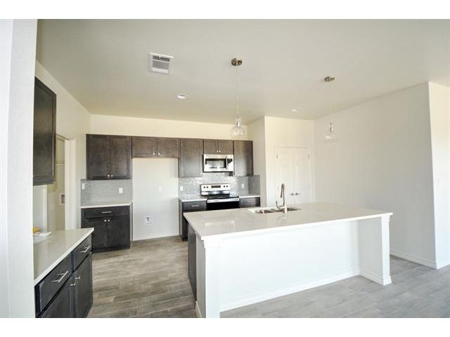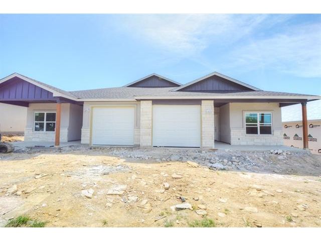 Hard tile through (looks like wood) - most of the photos are of finished/sold units - sprinkler system and full sod entire yards with privacy fences per unit - Granite tops bath & kitchen-3 bed 2 bath both sides 1 car garages each side w/opener - 100% masonry 4 sides - hot water heater in garage closet - COMPLETION MID JUNE 2020 - easy close cabinets w/hardware - high ceilings - master split from secondary beds - great investment! Across the street from the Jarrell High School in Calumet subdivision