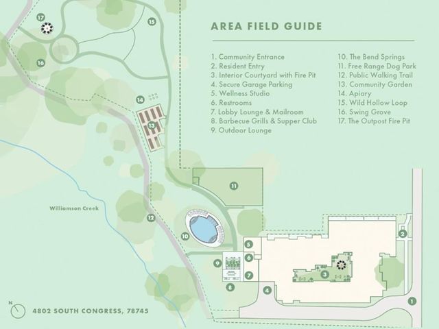 The Bend is a new open space concept residential community of 125 single-level homes along the South Congress corridor in South Austin along the burgeoning South Congress corridor and the new St. Elmo District. Behind the residences lies 4 acres of native greenspace along Williamson Creek with trails that lead to an urban homestead of back-to-the-land amenities. Find your space to roam! Now taking contracts with expected completion in 2022.